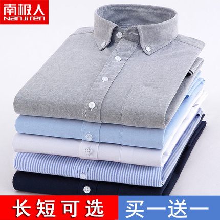 春秋长袖纯棉衬衫男士白色条纹牛津纺衬衣短袖夏季中老年爸爸寸衫
