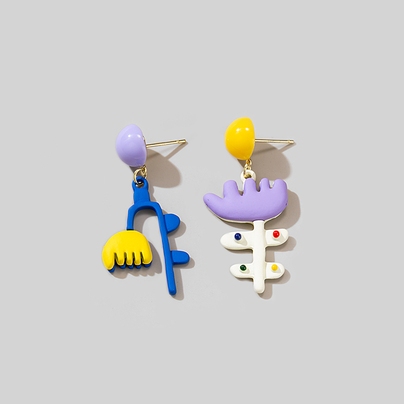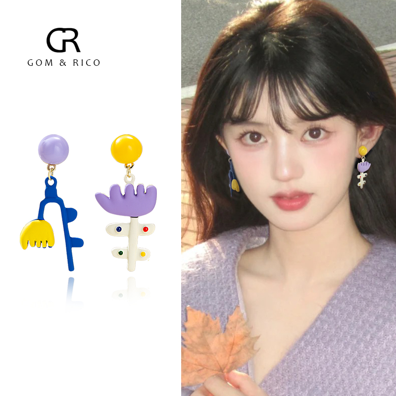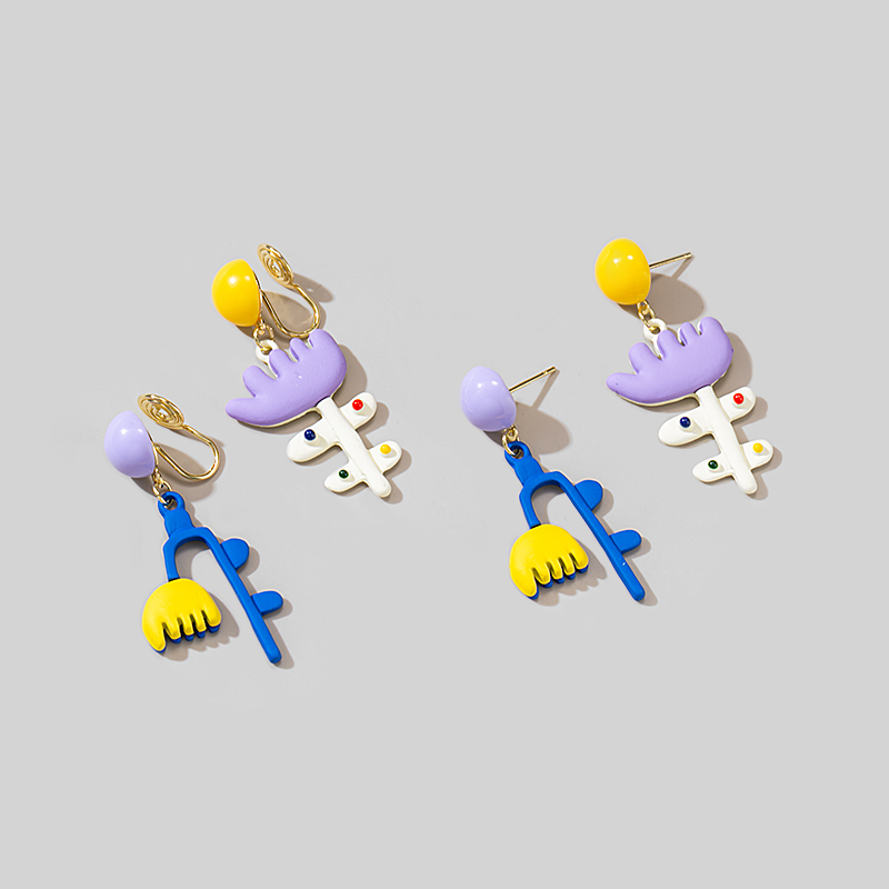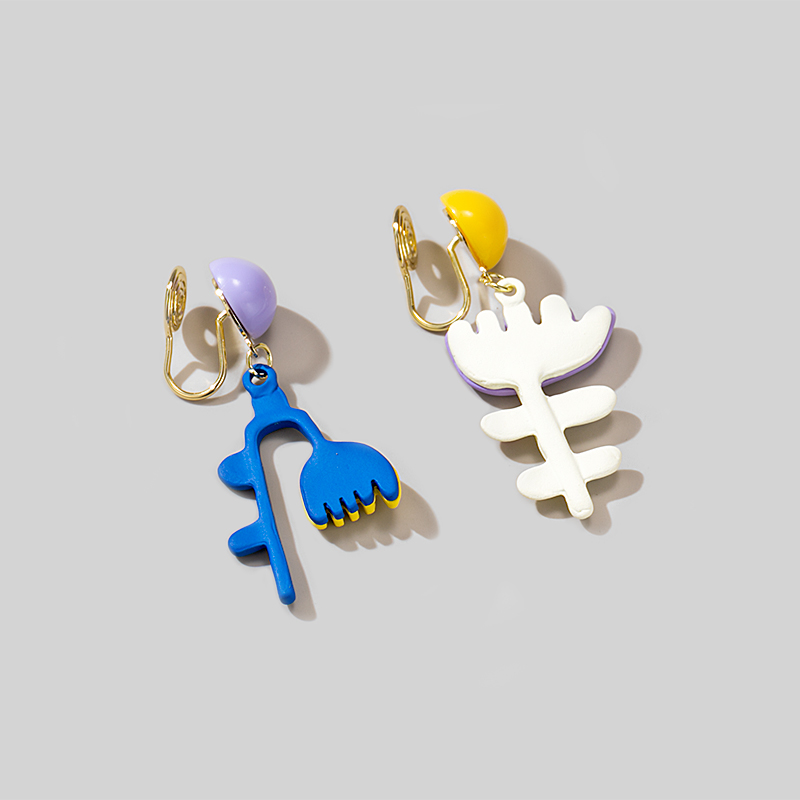 新款可爱个性多巴胺不对称度假风彩色花朵耳钉女无耳洞耳夹耳环