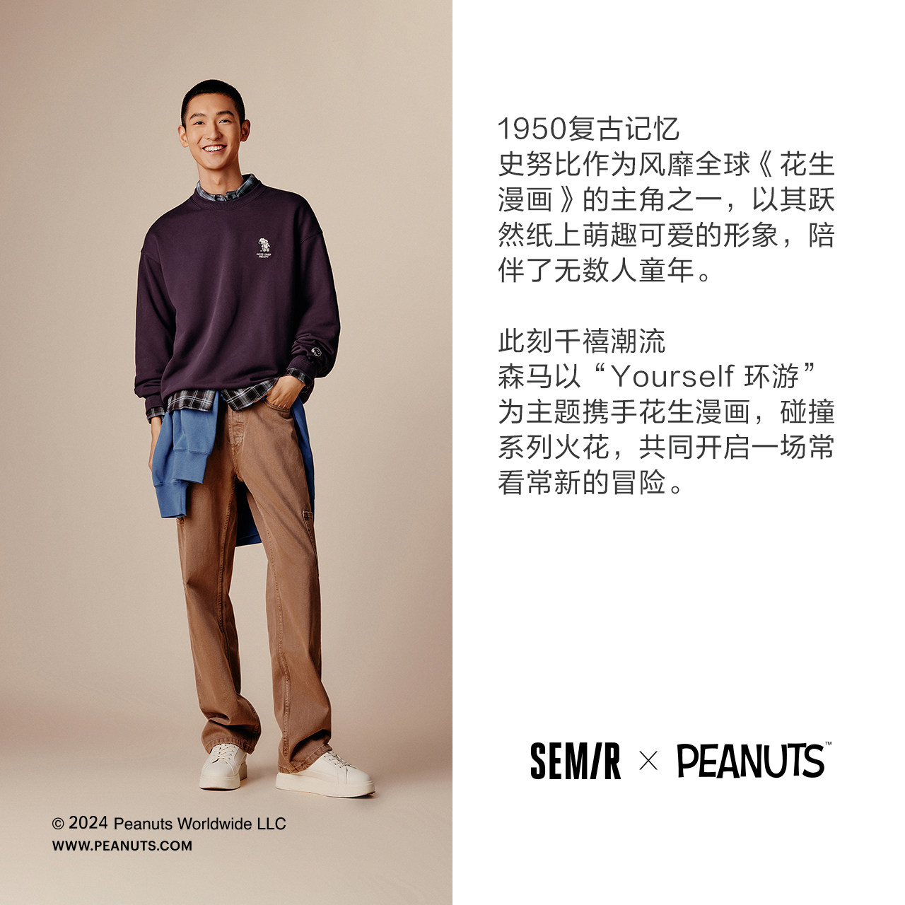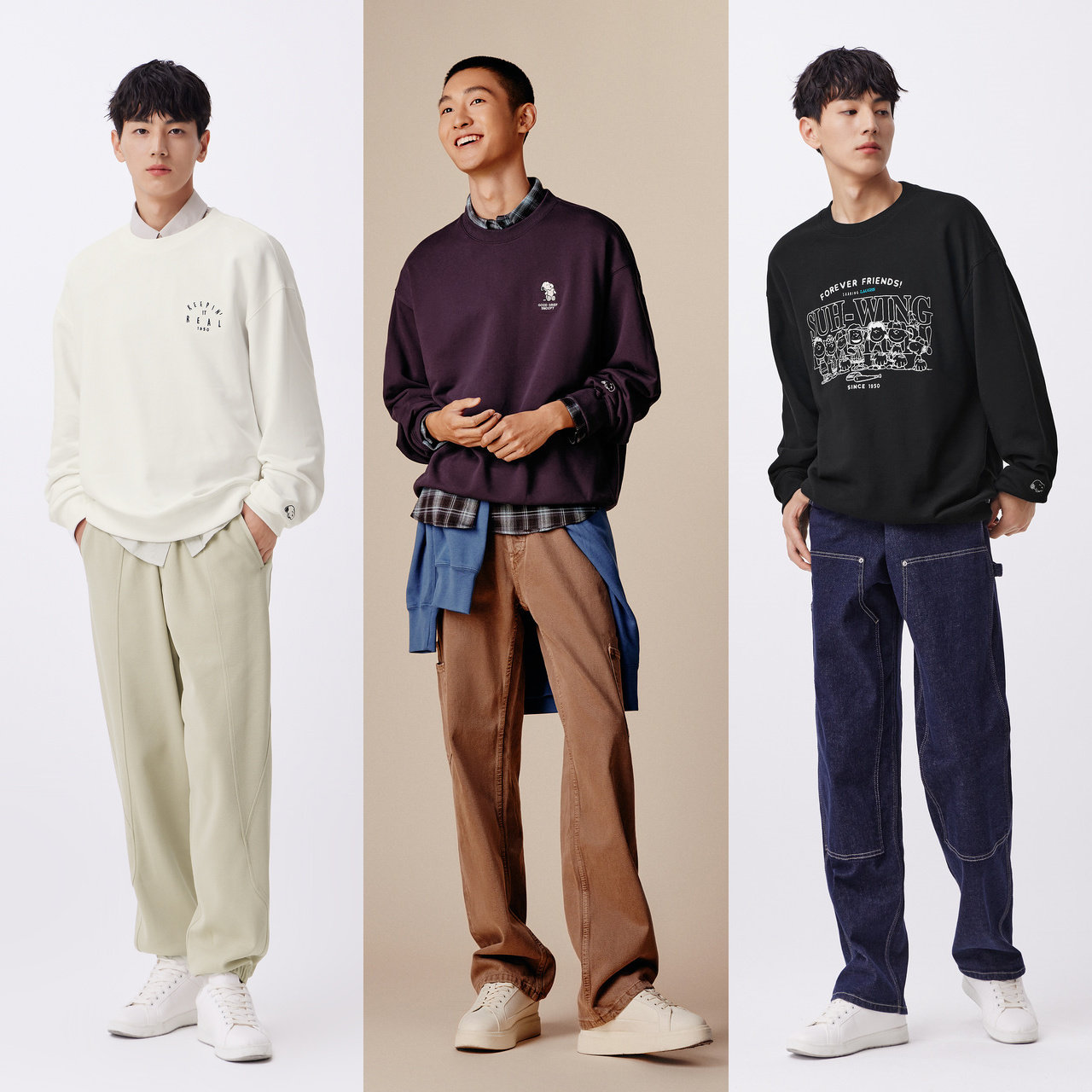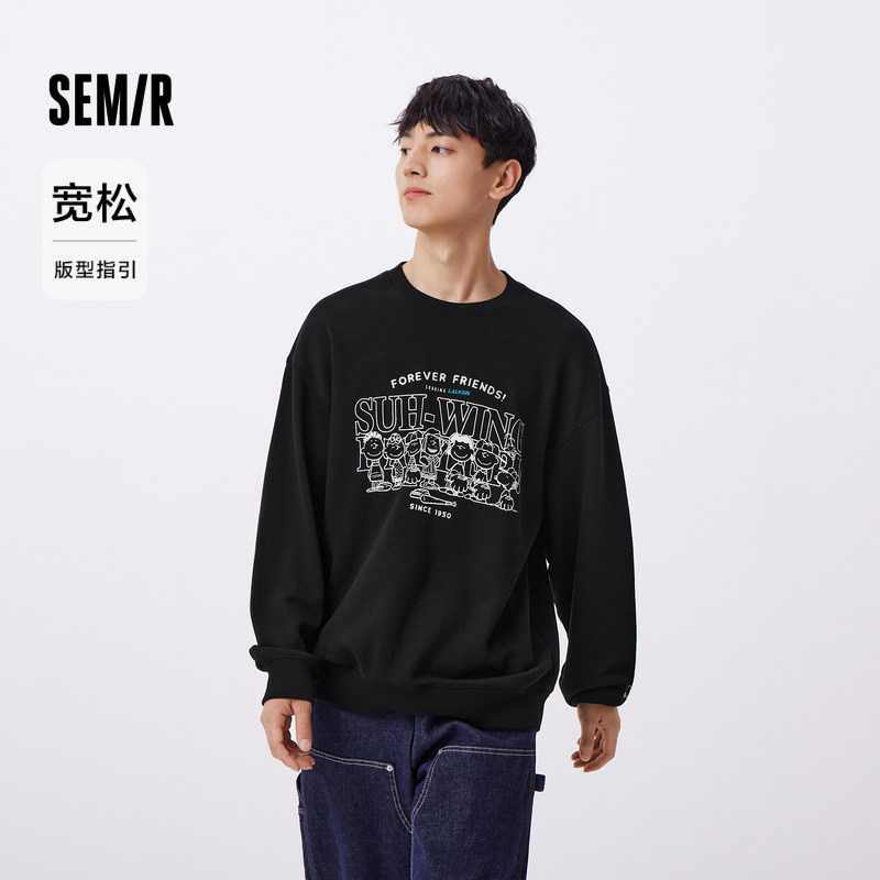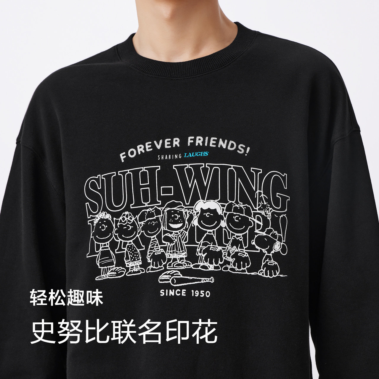 [商场同款]森马史努比系列卫衣男2024秋季新款情侣装绣花印花上衣