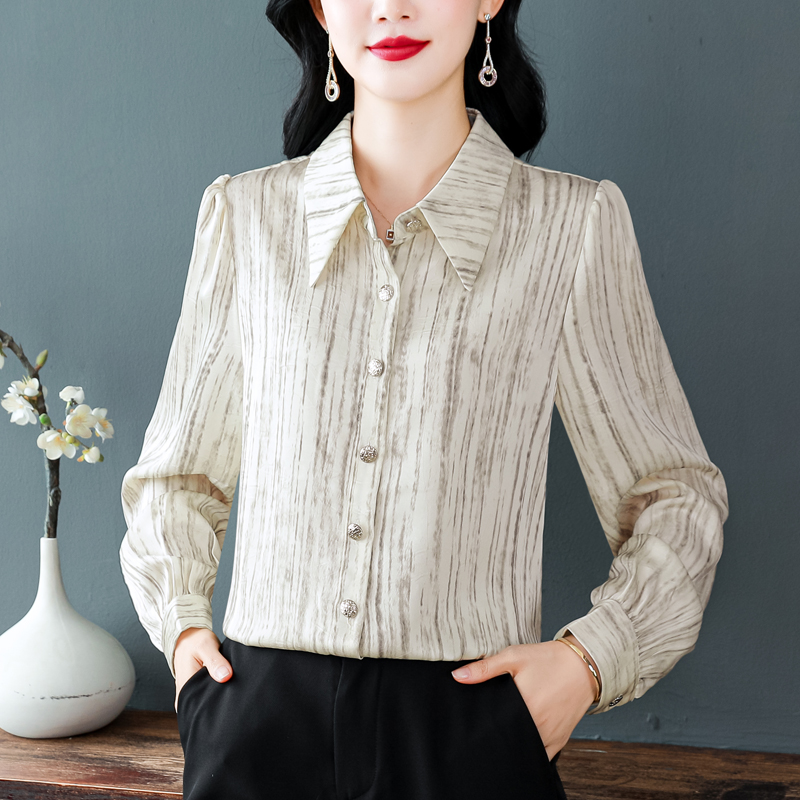 复古印花真丝衬衫女长袖2025秋装新款气质缎面衬衣洋气桑蚕丝上衣