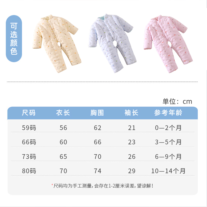 宝宝棉花连体衣 新生儿加厚保暖哈衣 初生婴儿连身衣服秋冬季