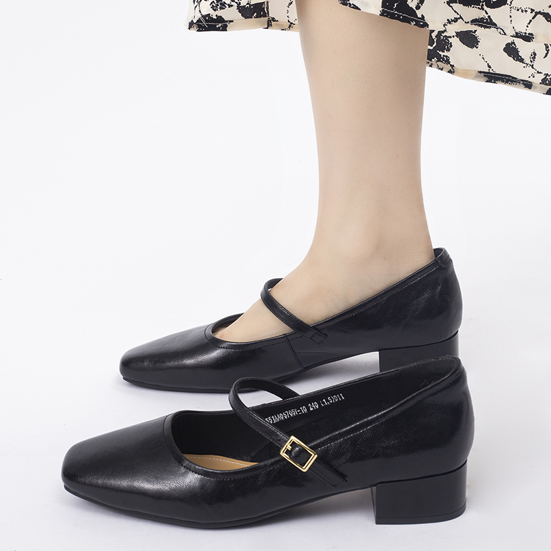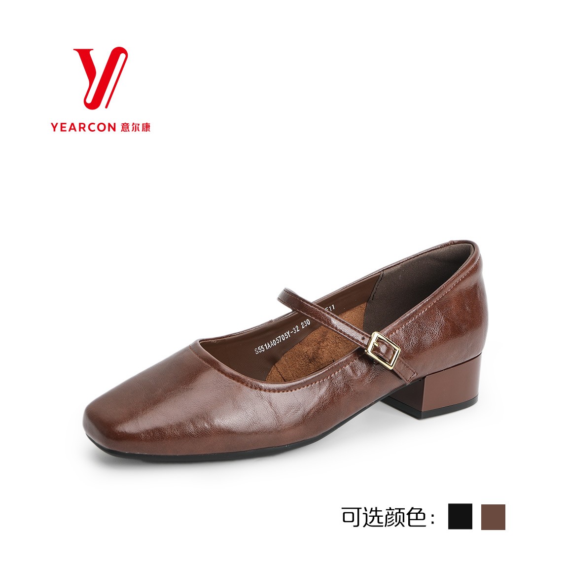 意尔康女鞋2024秋季新款羊皮单鞋女方头粗跟时尚正品S551AA05705Y