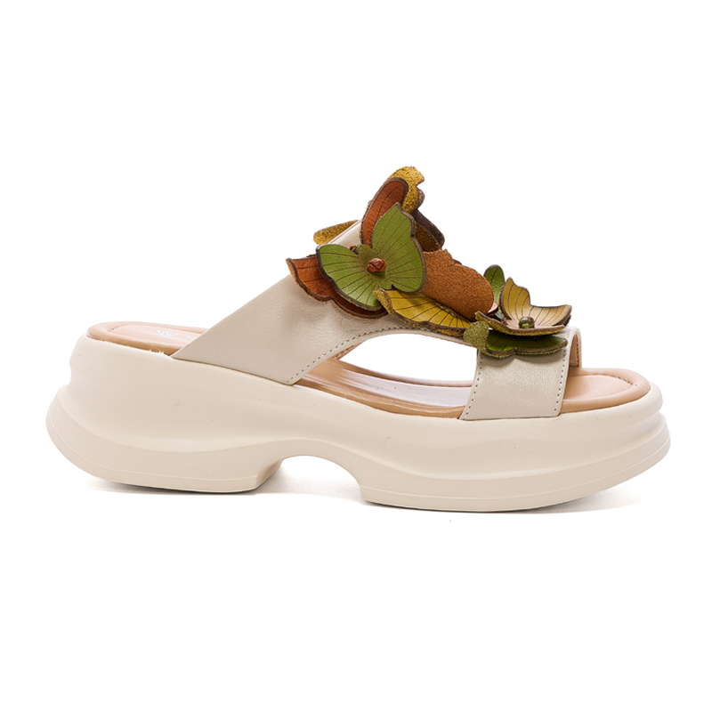 新中式厚底鱼嘴鞋2025新款夏季松糕罗马一字拖真皮高跟女士拖鞋子