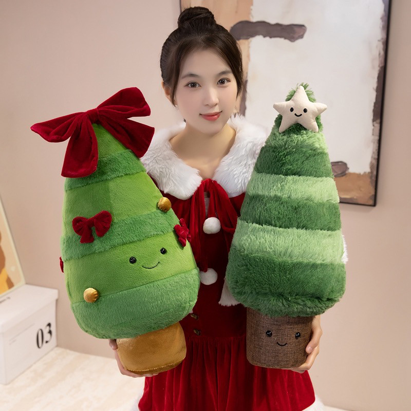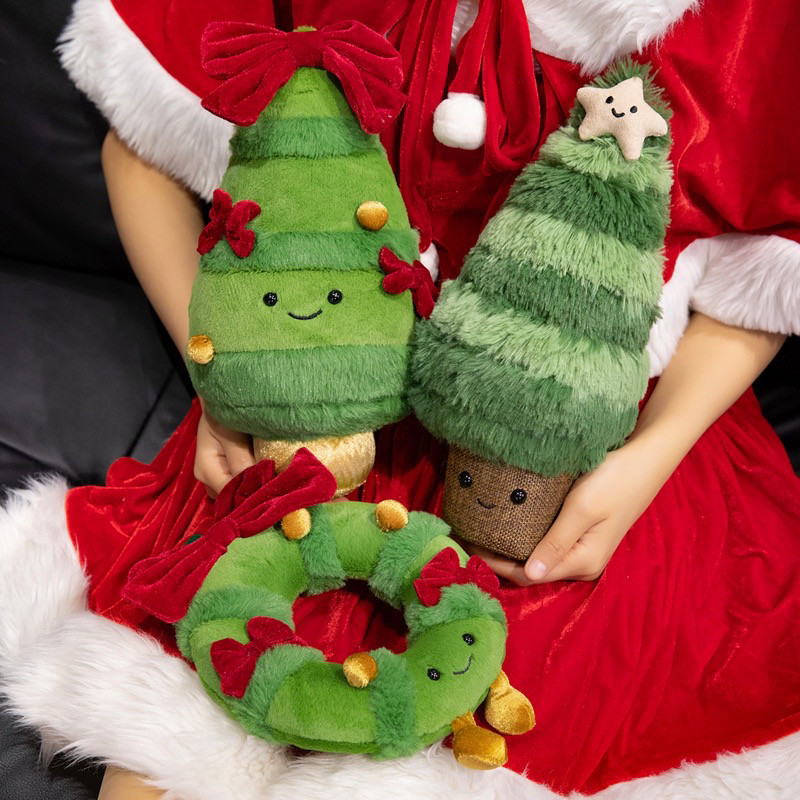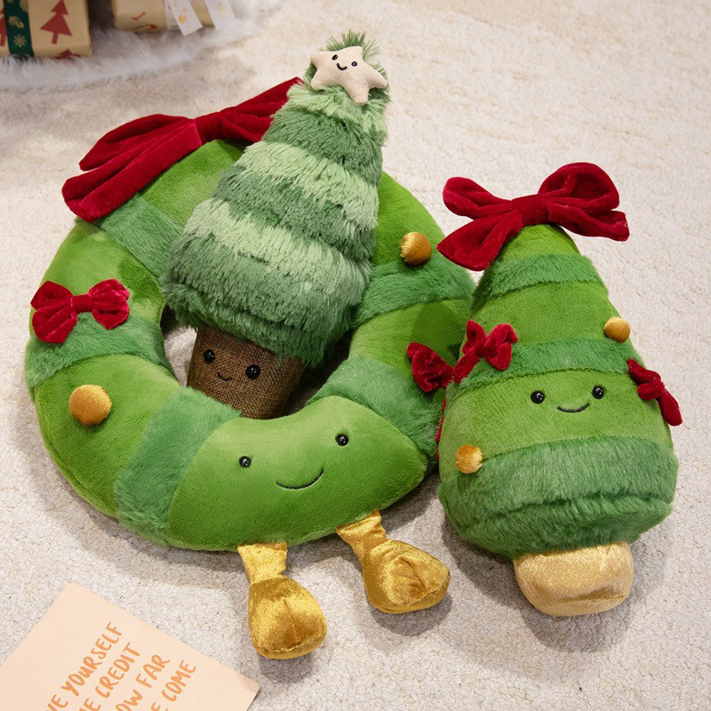 圣诞树抱枕毛绒玩偶公仔靠枕客厅摆件圣诞节装饰花环儿童节日礼物