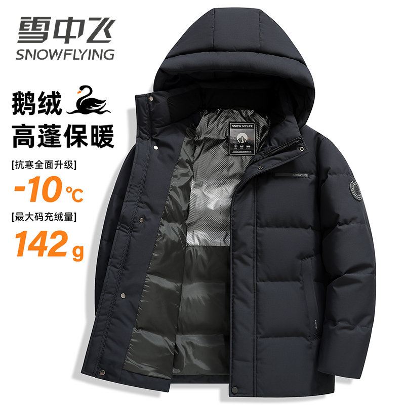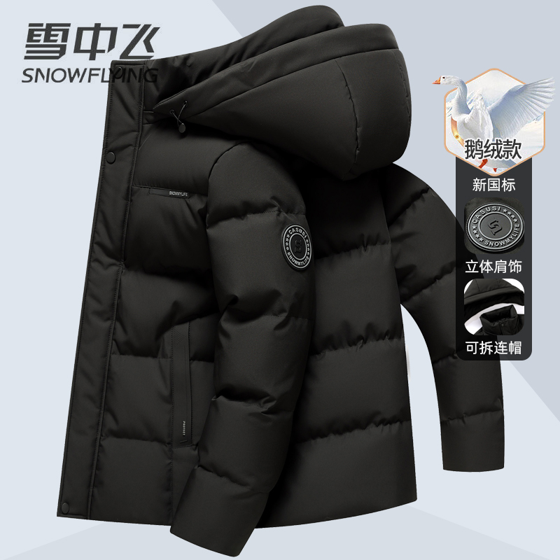 雪中飞男士羽绒服短款2025冬季新款加厚鹅绒服中老年爸爸冬装外套