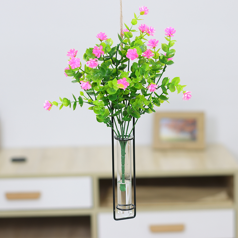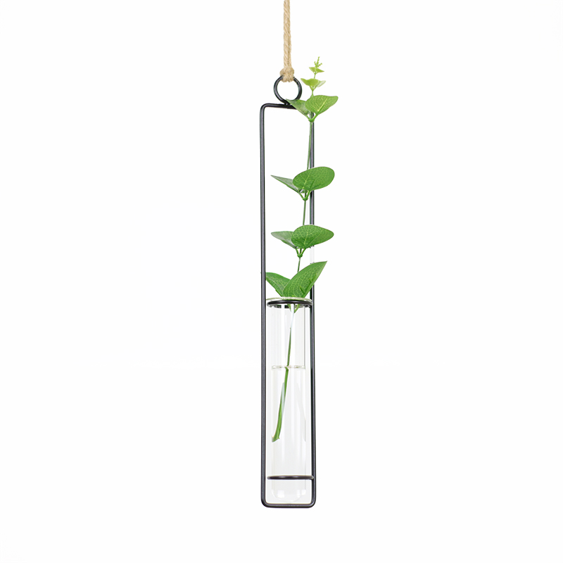 创意悬挂麻绳水培挂件铁艺玻璃花瓶客厅壁挂水培绿萝植物容器壁饰