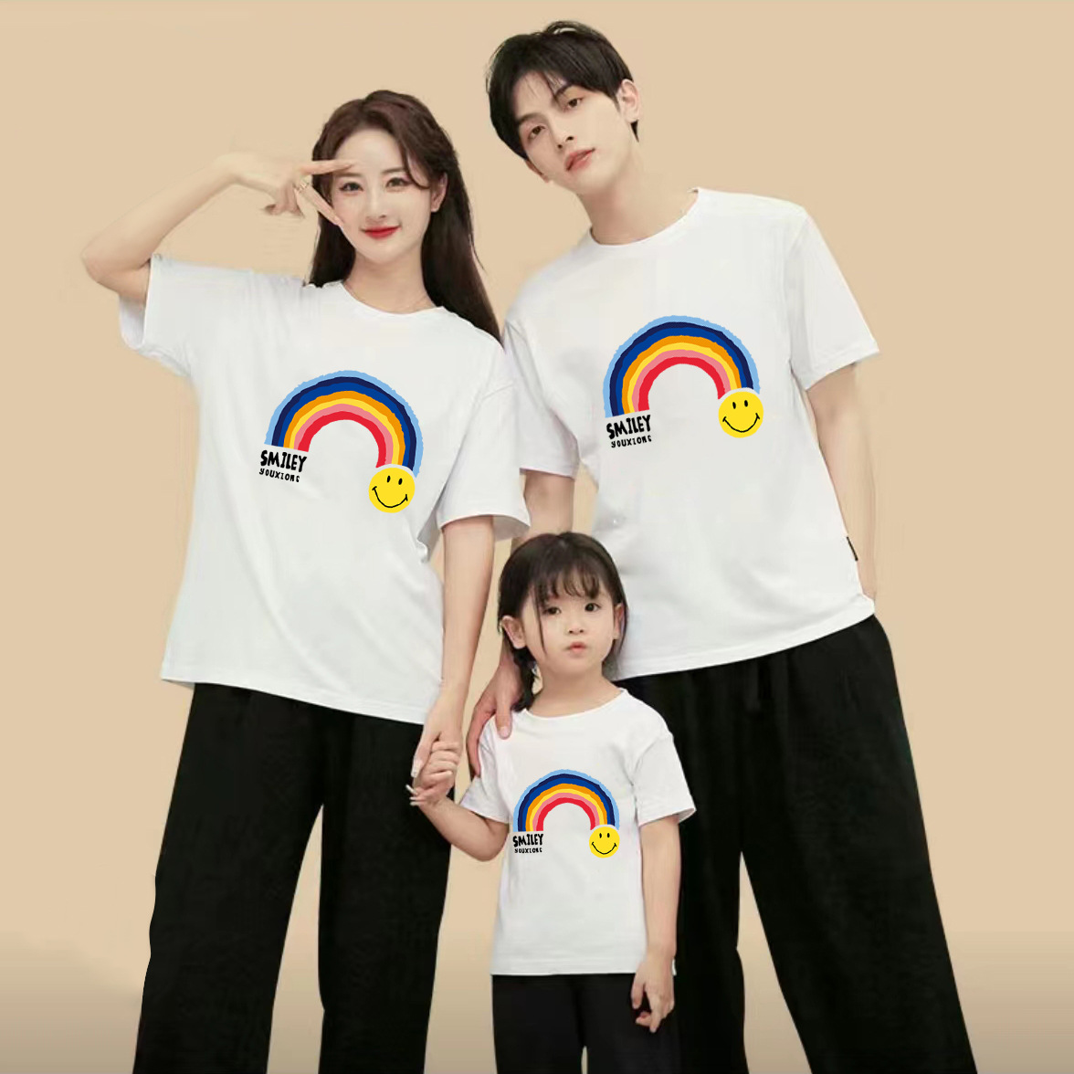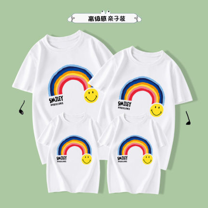 幼儿园六一活动表演班服2023夏季新款亲子装纯棉短袖T恤彩虹男女t