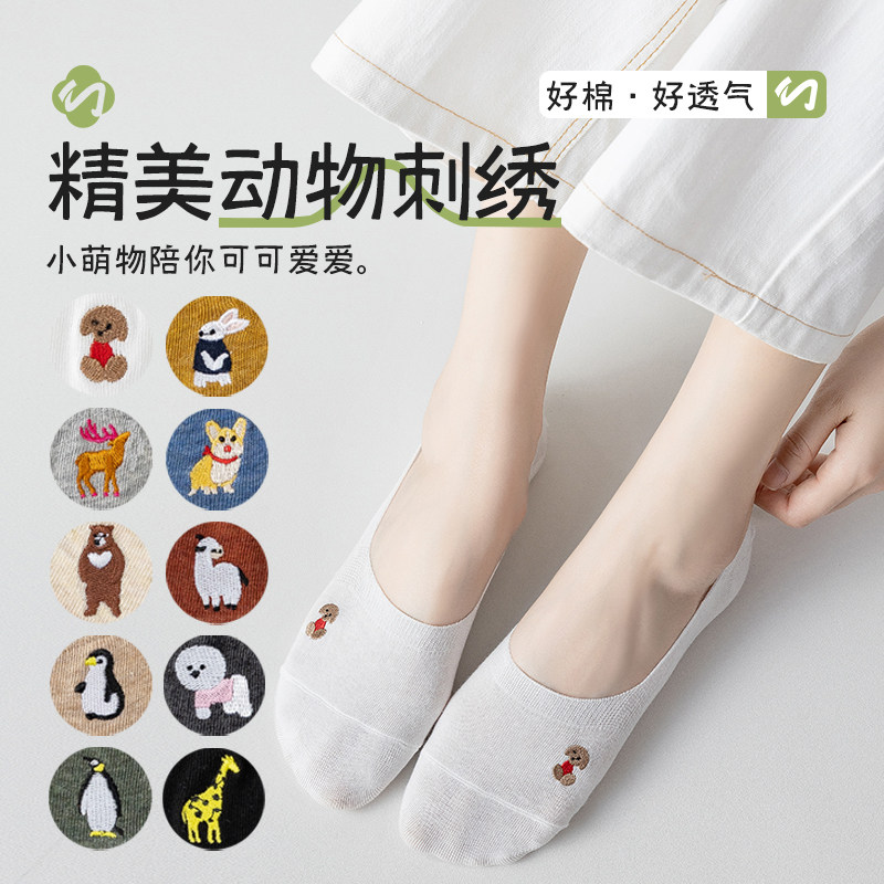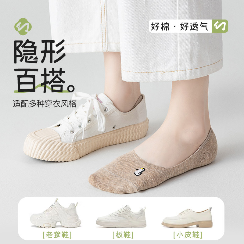 船袜女浅口隐形袜纯棉底袜子女短袜硅胶防滑不掉跟ins潮低帮可爱