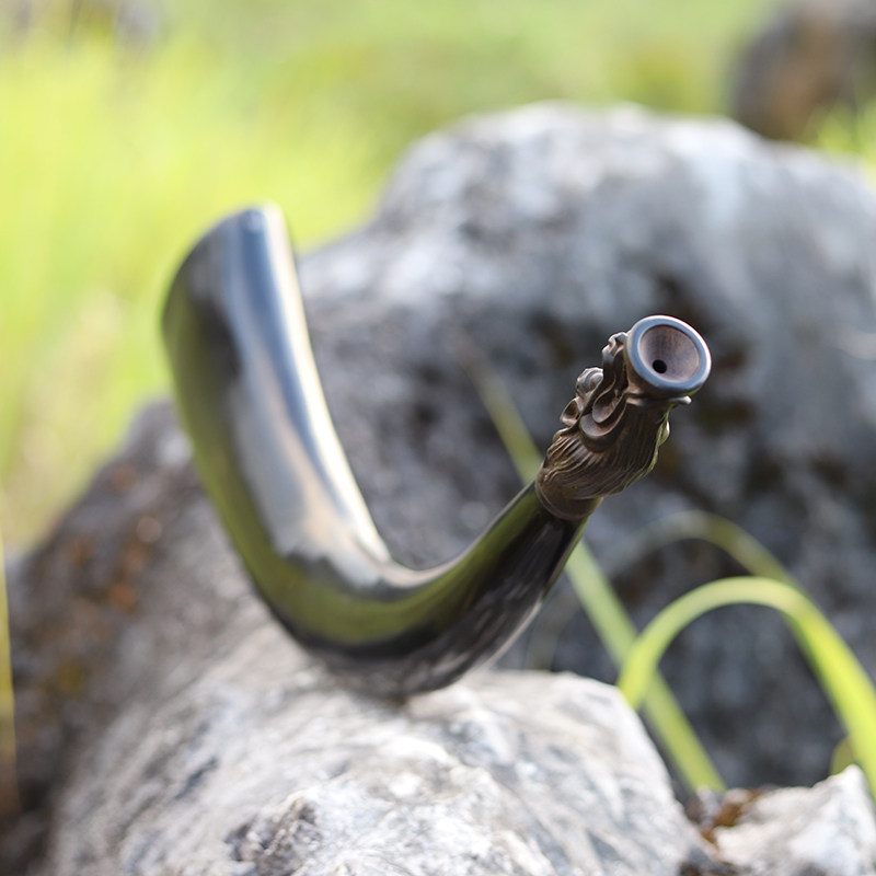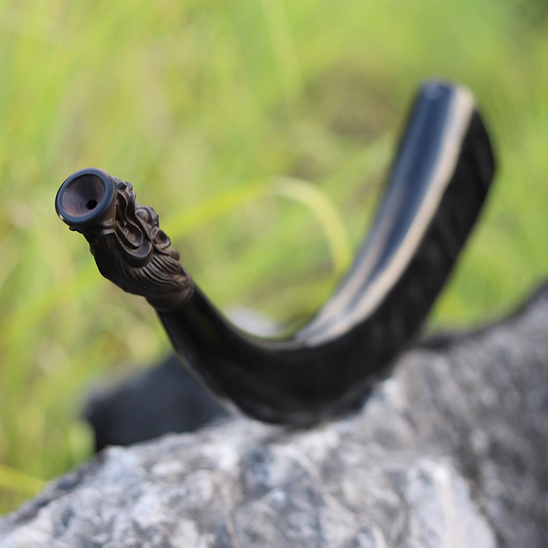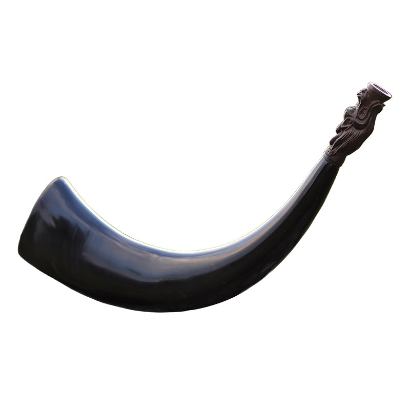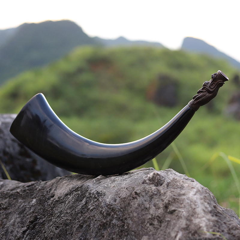 天然牛角传统师公号角搭配紫光檀木制号嘴表演道具工艺品千木工坊