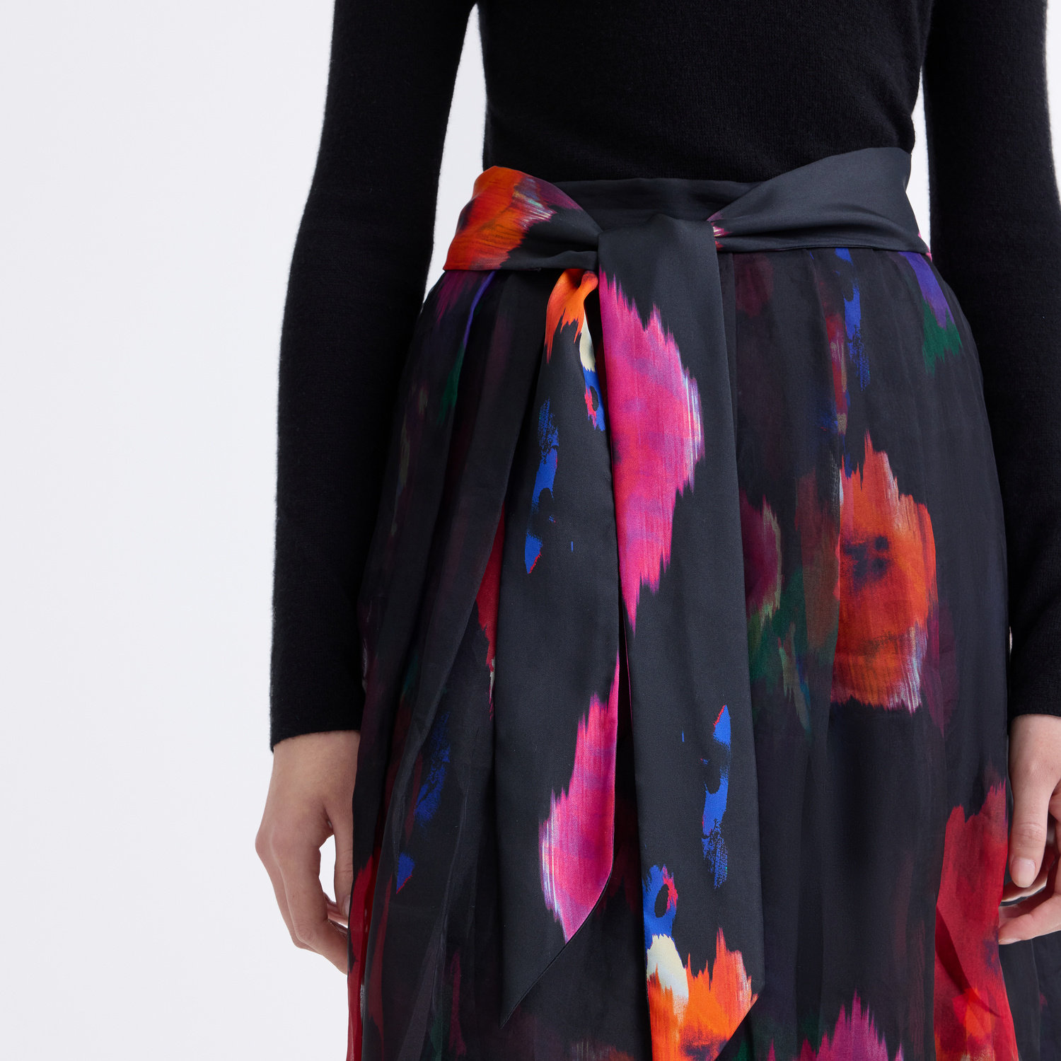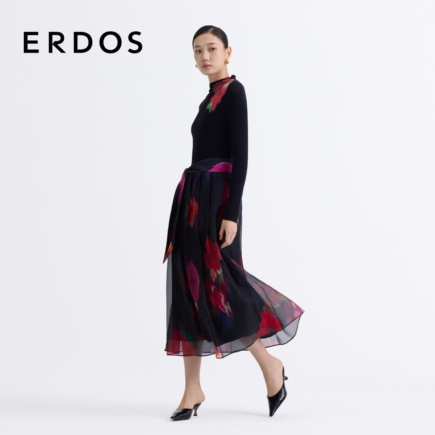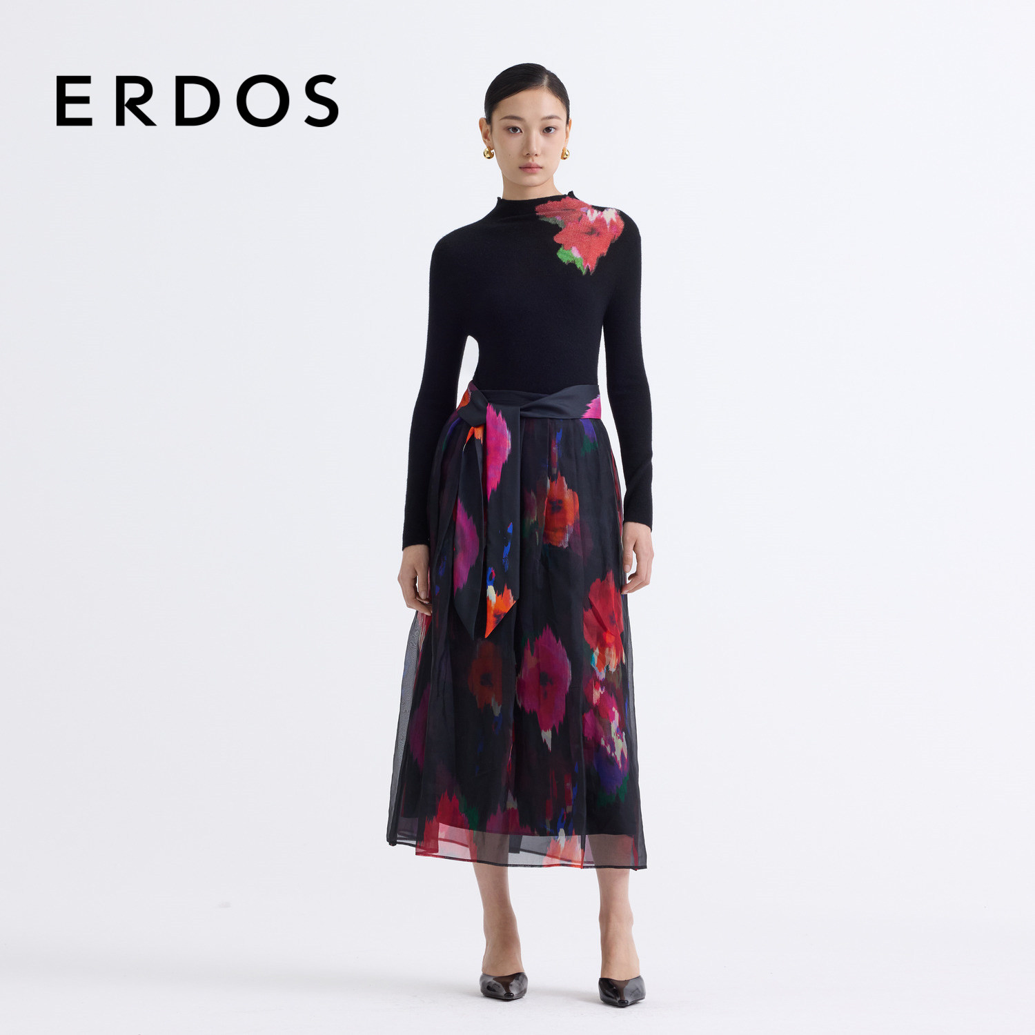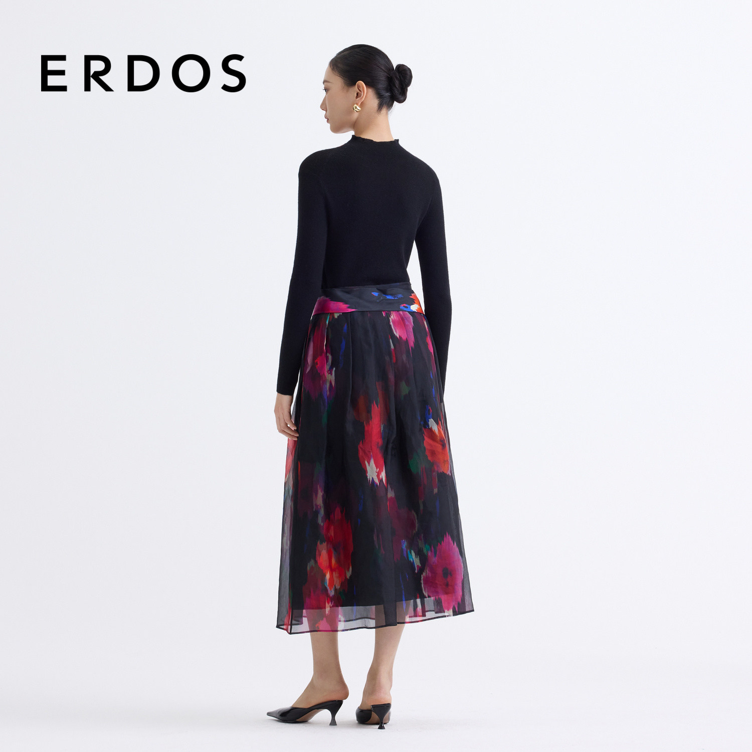 【真丝两件套伞裙】ERDOS 复古优雅玫瑰印花A字半身裙25年春新品