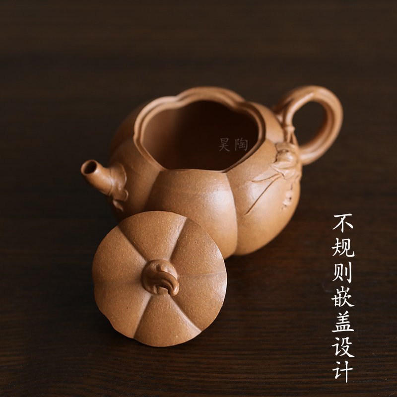 昊陶 南瓜壶 老段泥 筋纹仿生器 花器 中小品嵌盖手工 宜兴紫砂壶