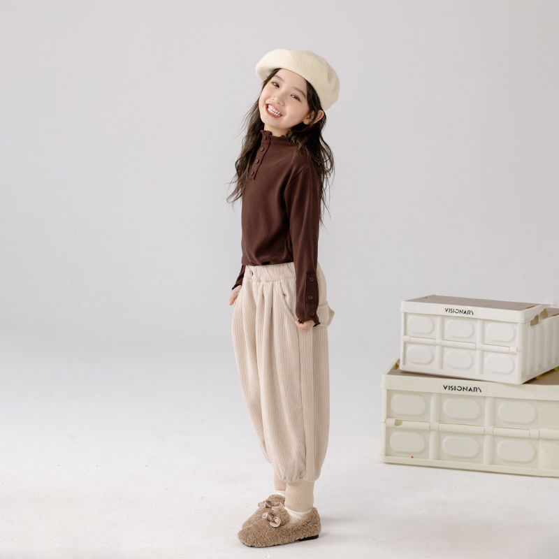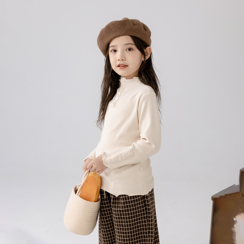 女童秋冬季纯棉半高领打底衫儿童中大童学生简约时尚加绒长袖T恤