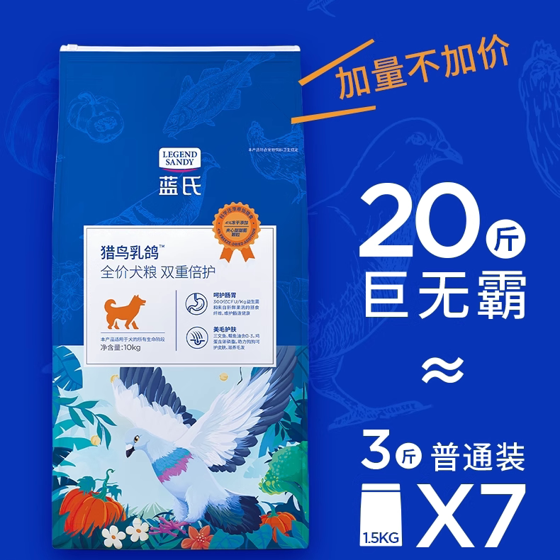 蓝氏猎鸟乳鸽狗粮10kg20斤装幼犬大中小型鸡肉燕麦牛肉金枪鱼15KG