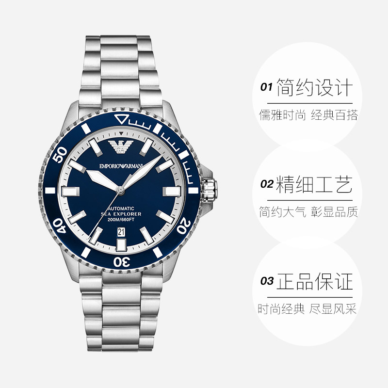 【自营】新品Armani阿玛尼男表绿水鬼夜光商务机械表男AR60079