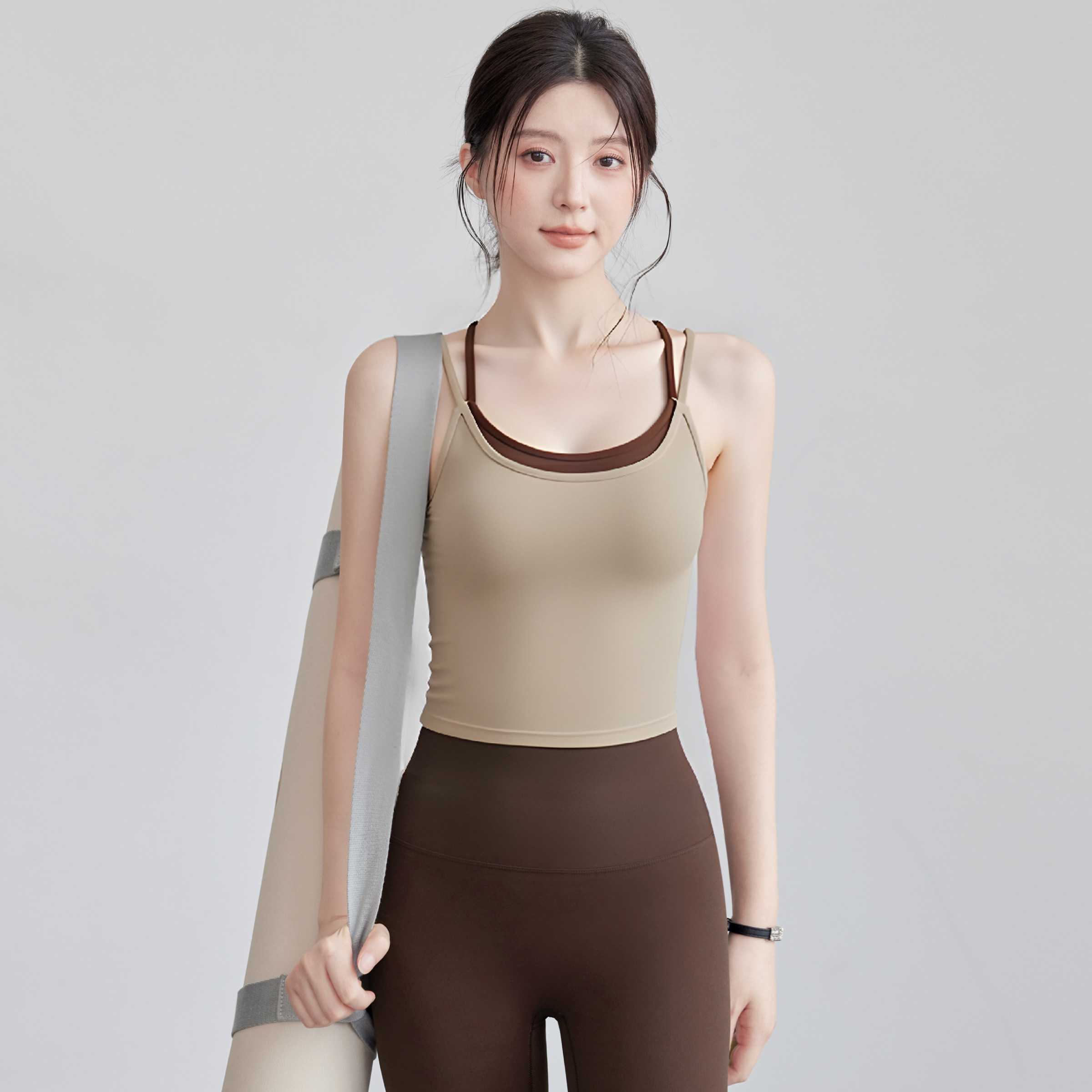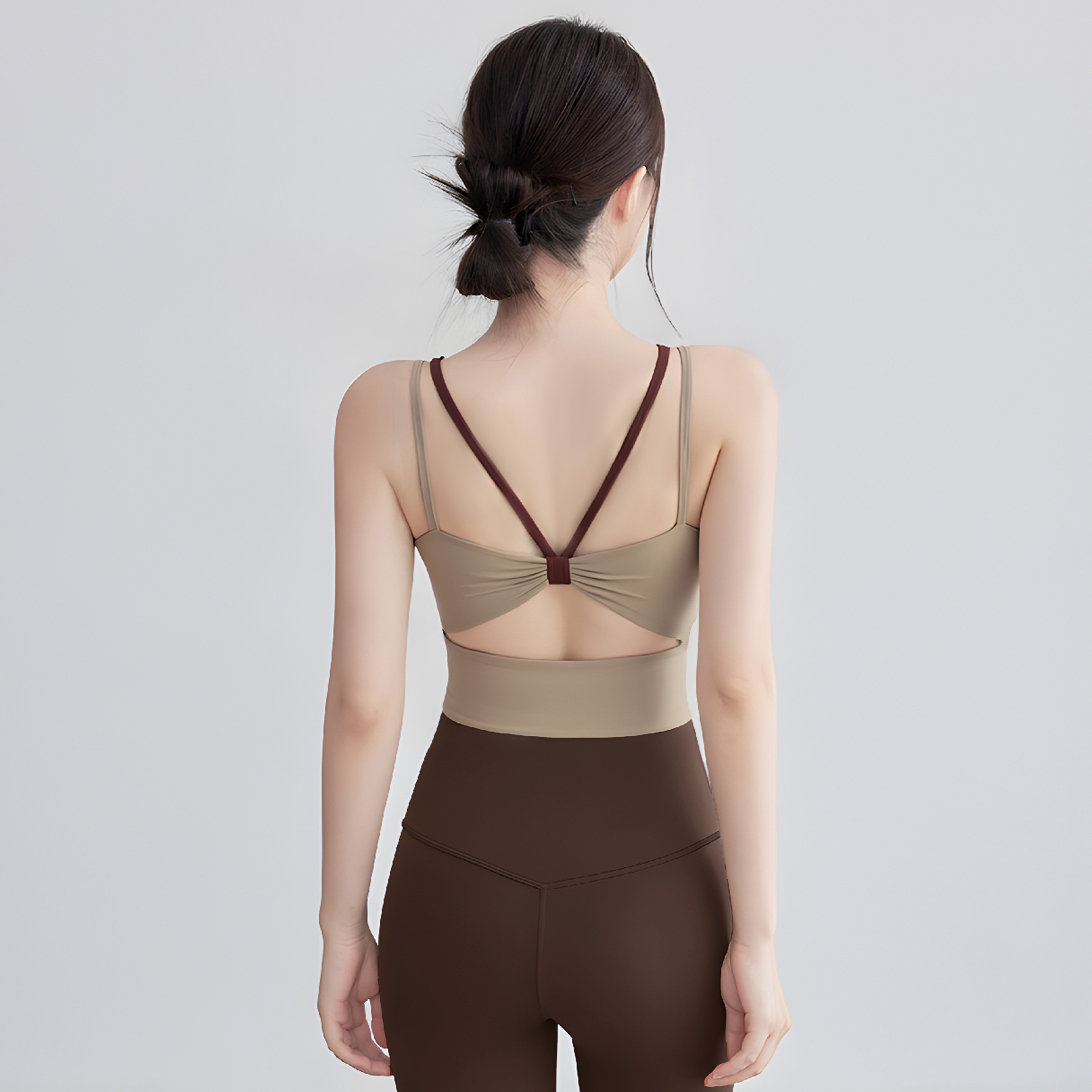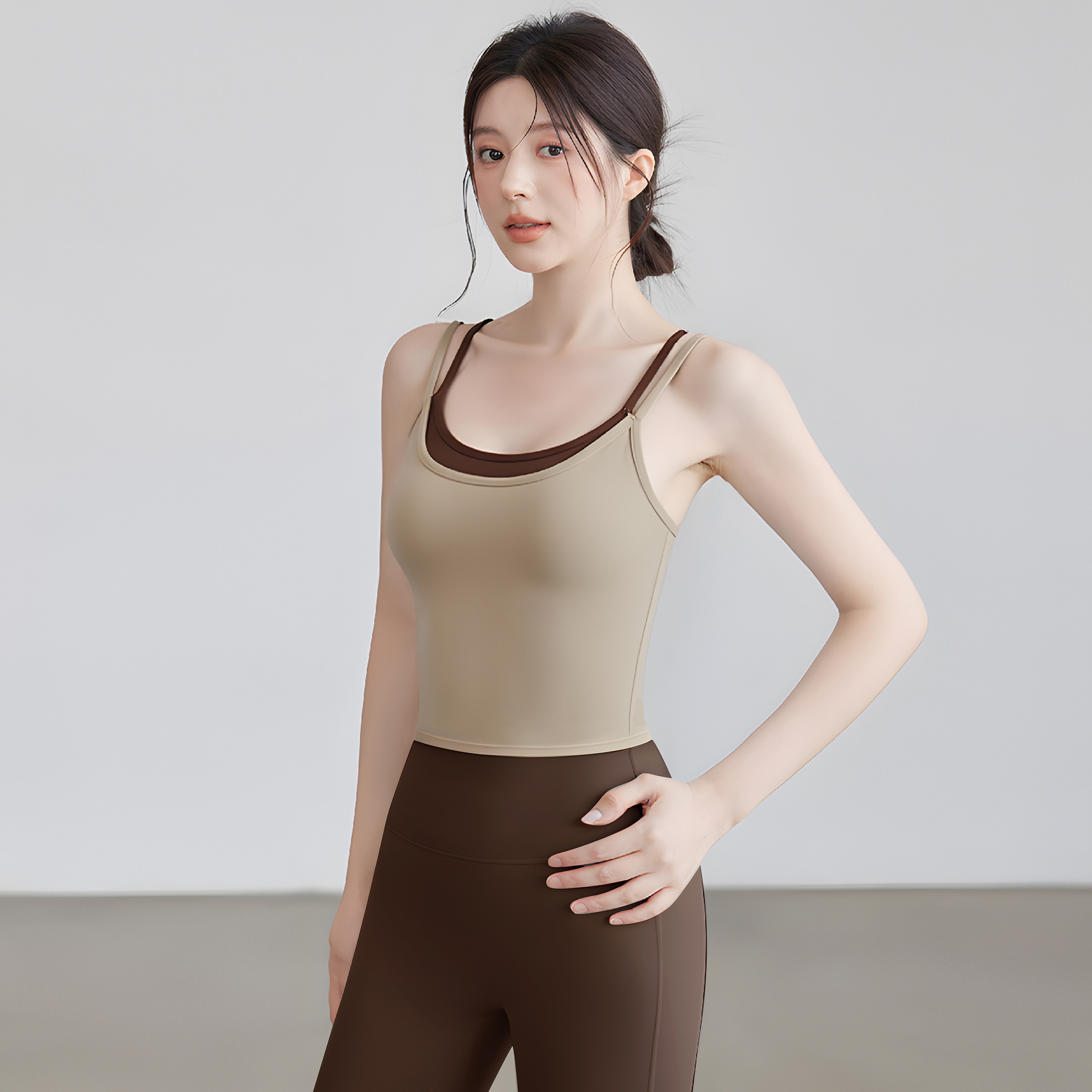 VOJ美背运动内衣一体式防震拼色瑜伽背心外穿跑步训练文胸套装新