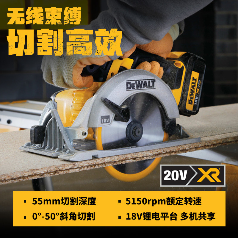 得伟锂电锯20V充电式电圆锯165mm木工专用手提式圆锯切割机DCS391