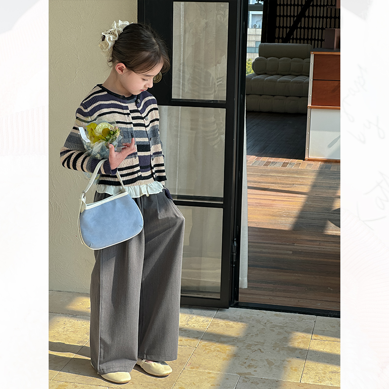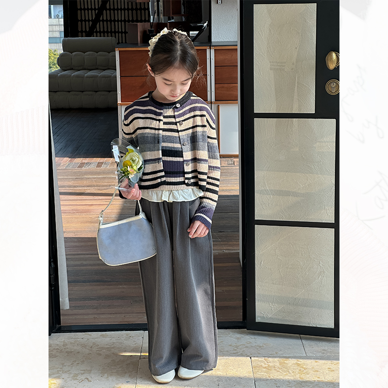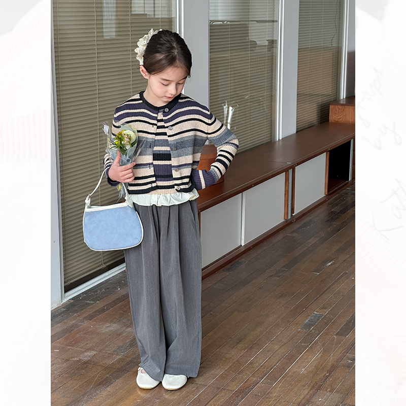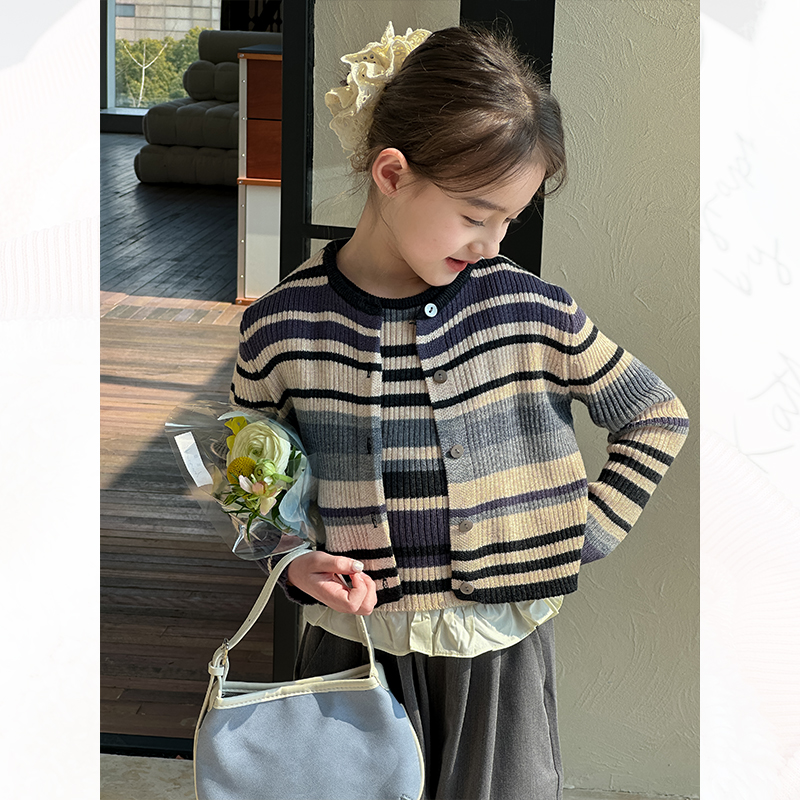 韩国女童条纹针织开衫背心两件套