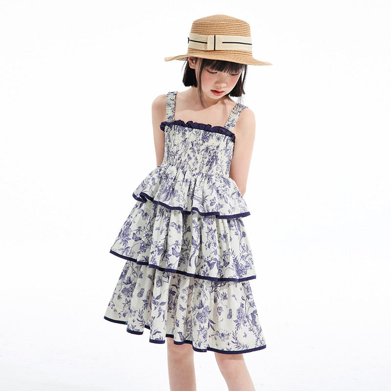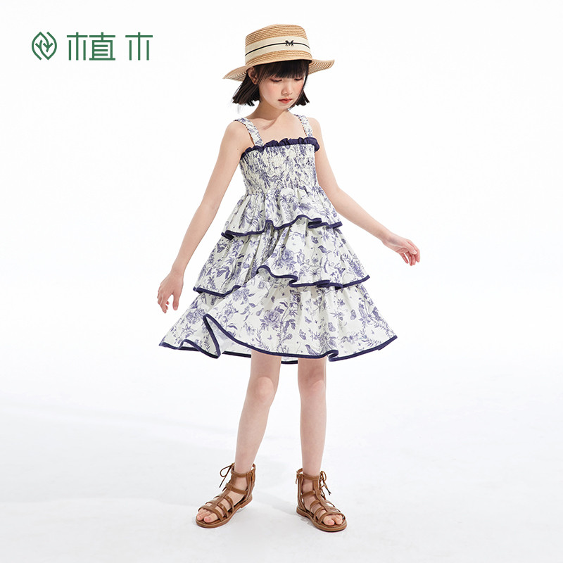 植木童装女童裙子2025夏季新款中大童洋气公主裙儿童吊带连衣裙