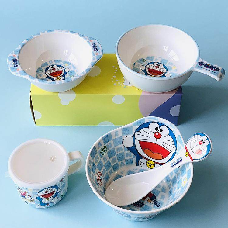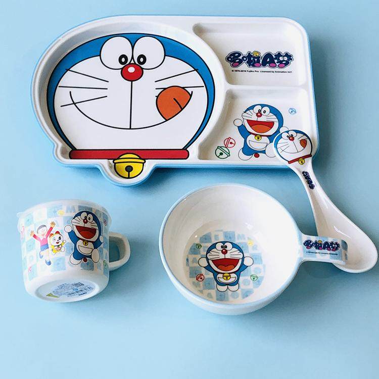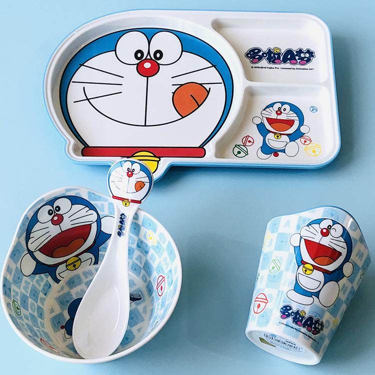 五和哆啦A梦餐具 儿童餐盘分隔盘密胺叮当猫水杯幼儿园吃饭辅食碗