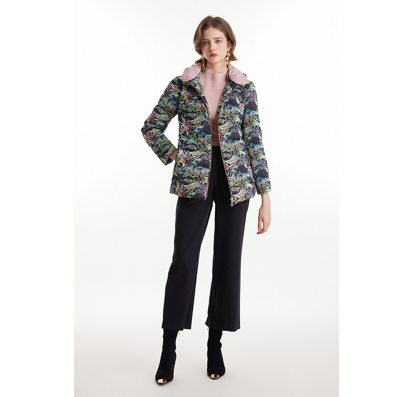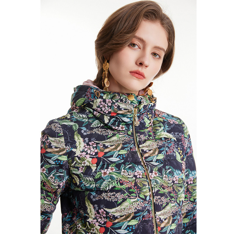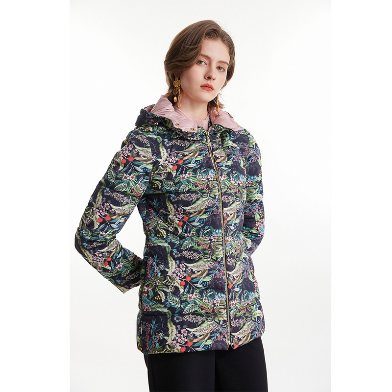 MORELINE沐兰高级感连帽印花羽绒服女冬季白鸭绒御寒服