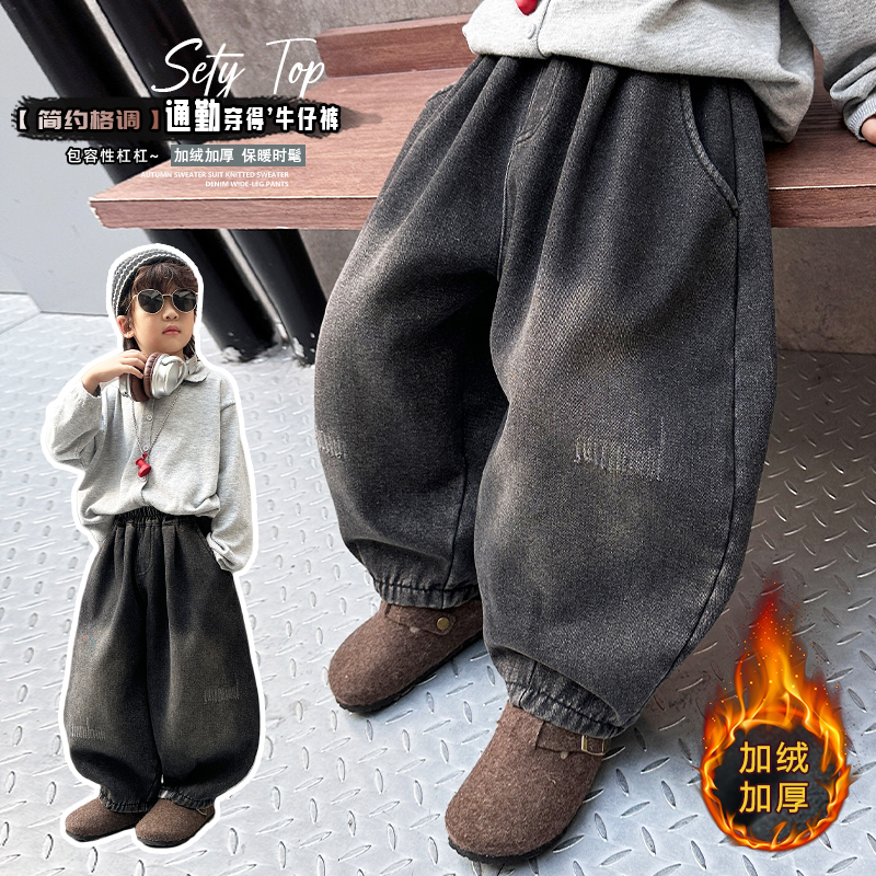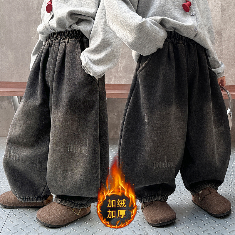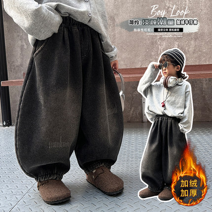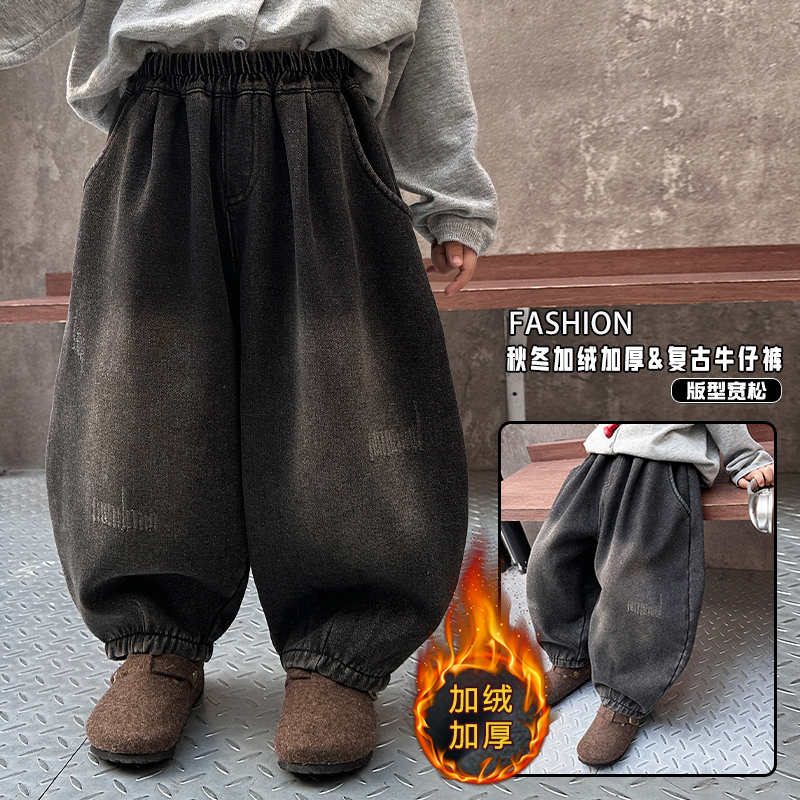 男童牛仔裤2025新款儿童宽松休闲裤中小童秋冬加绒复古牛仔弯刀裤