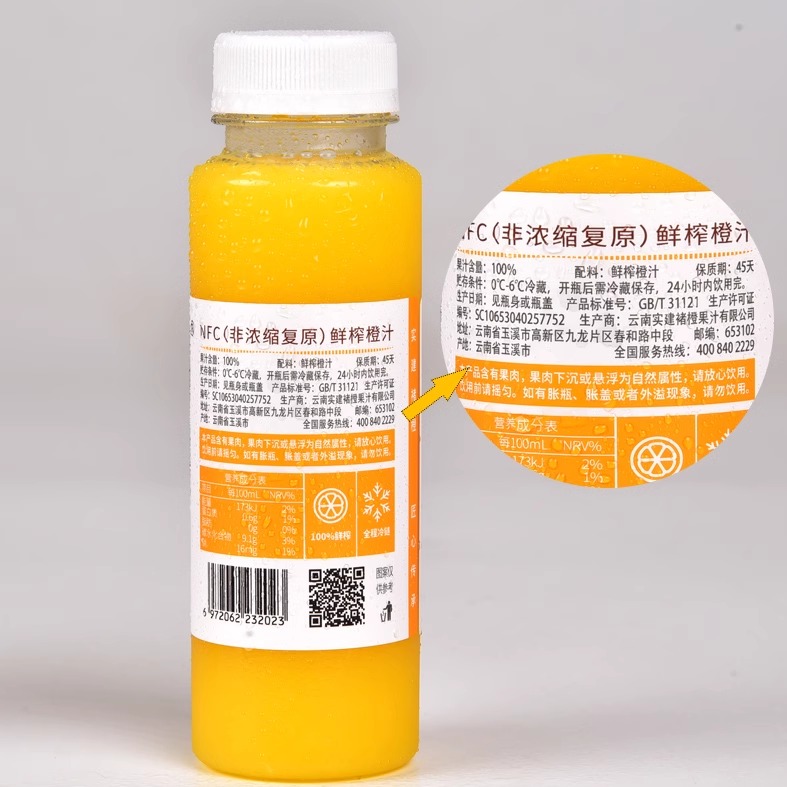 褚橙NFC鲜榨橙汁6/12/24瓶*245ml新鲜纯果汁非浓缩还原0添包邮