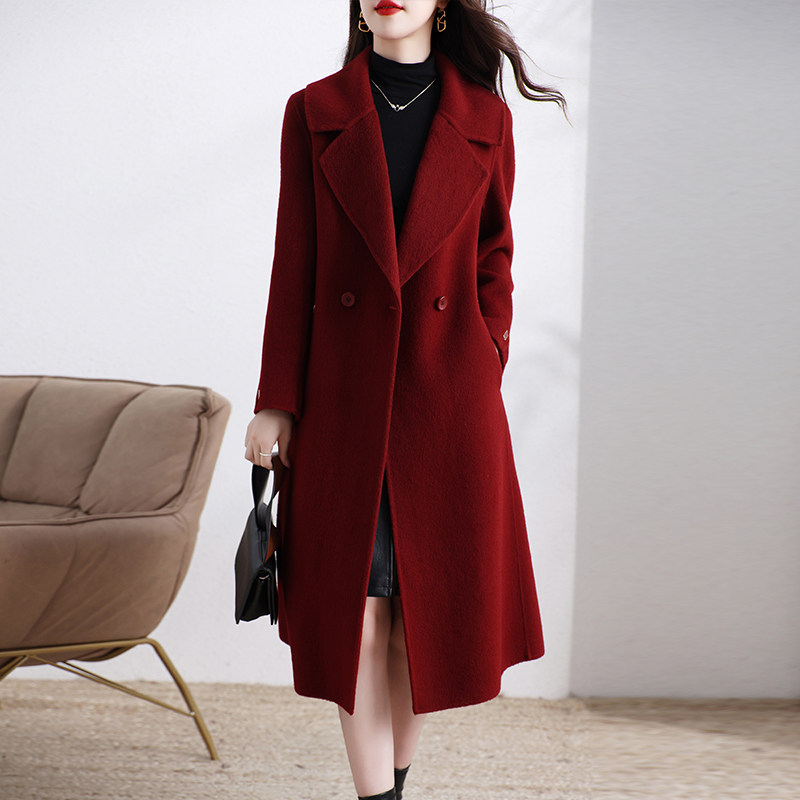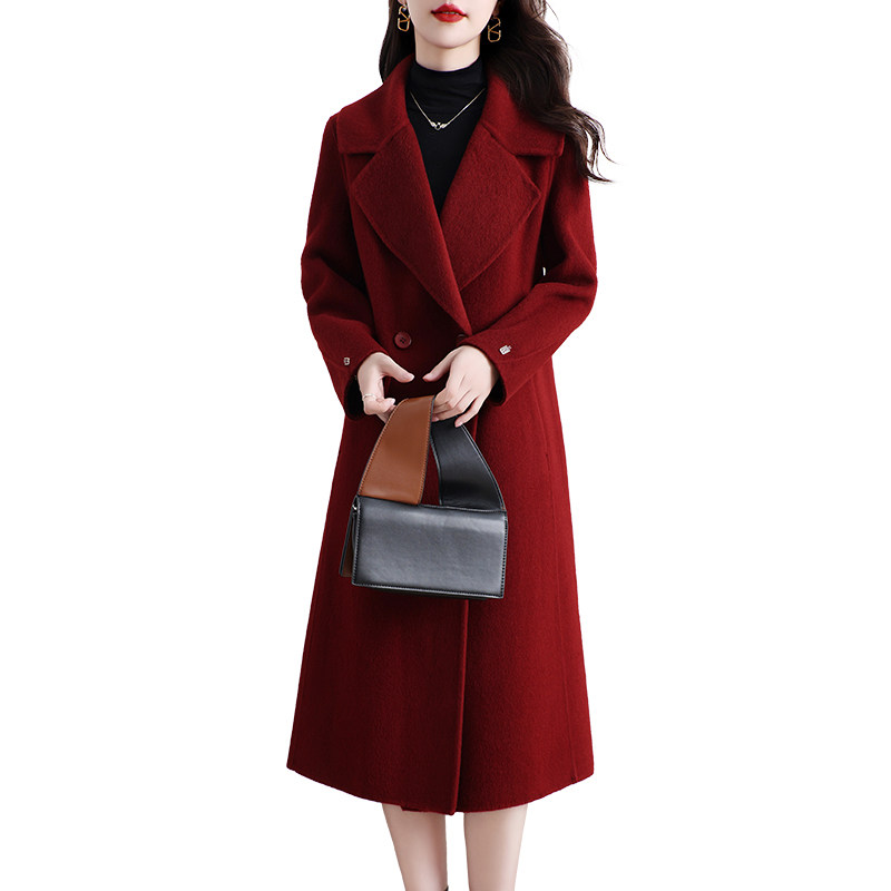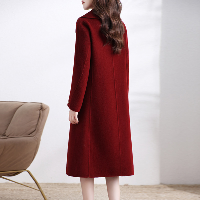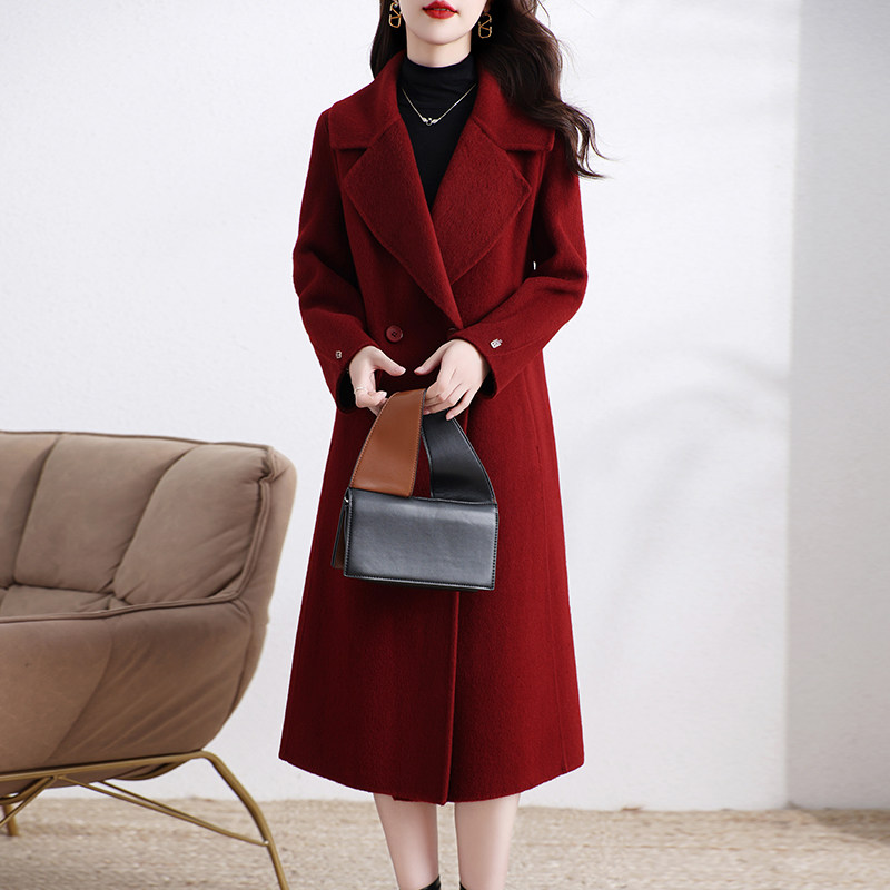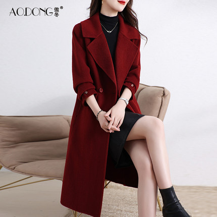 新款高级感双面绒大衣女中长款过膝收腰西装领羊毛呢外套气质秋冬