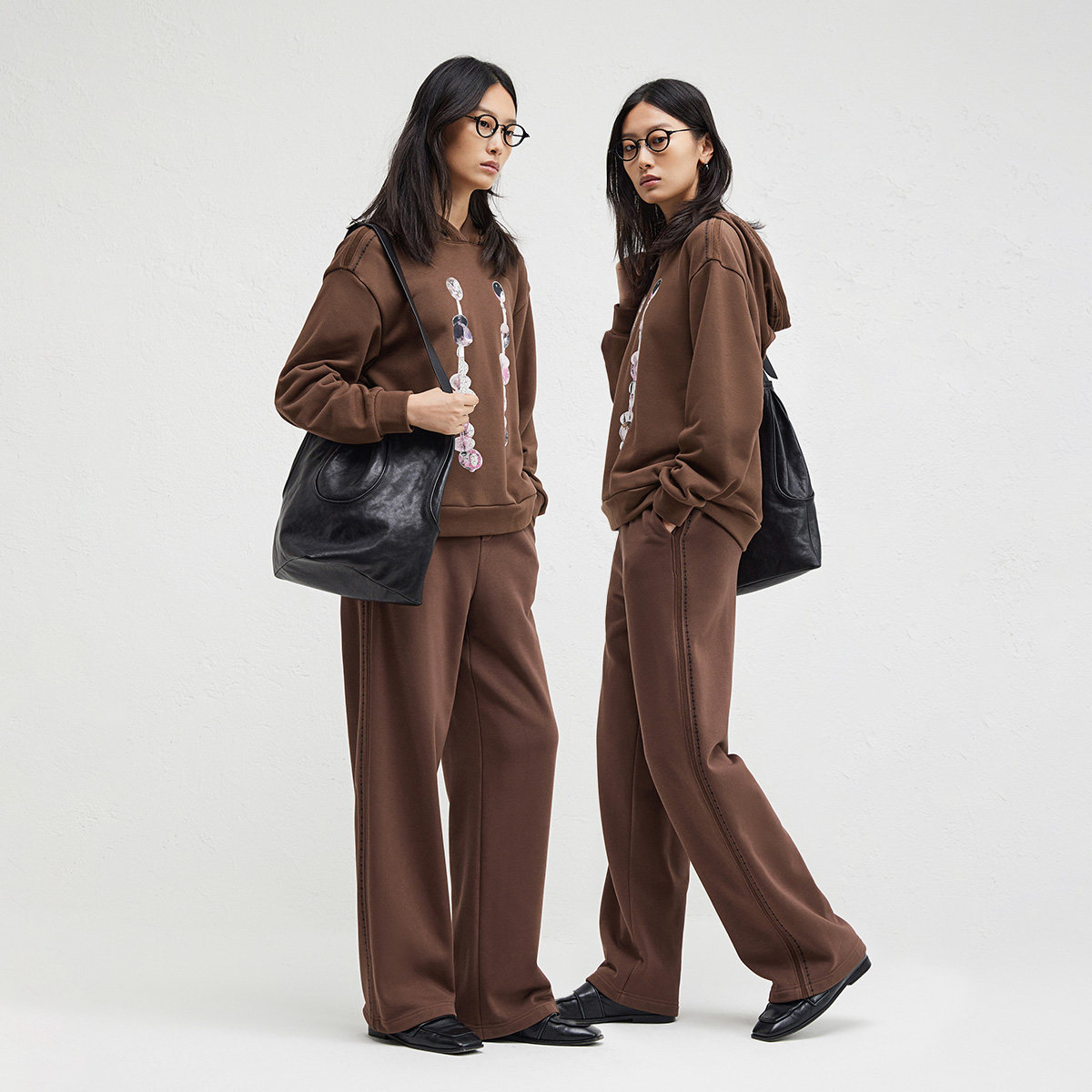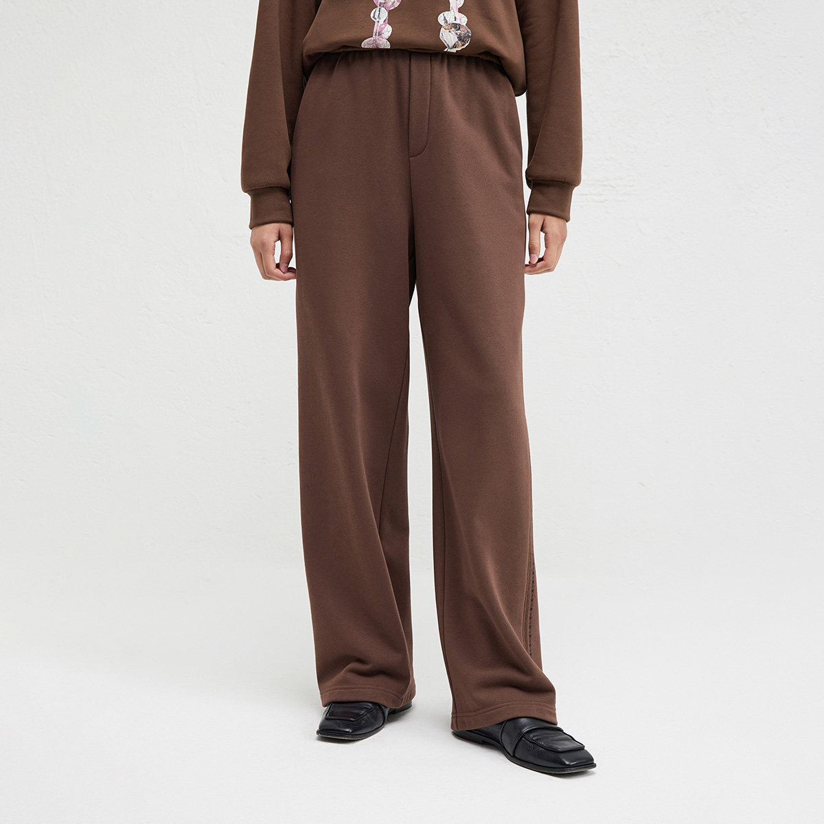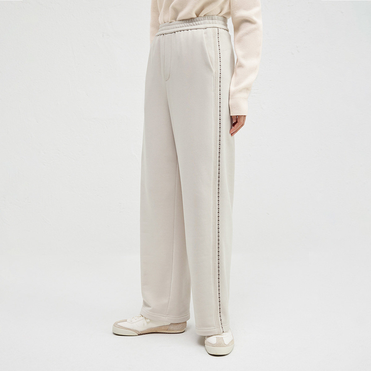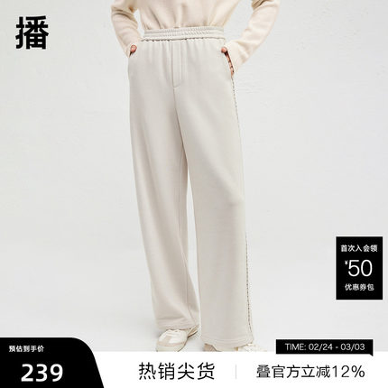 【播奥莱】播商场同款垂感侧边绣花休闲裤女冬新阔腿裤BDR4KD3922