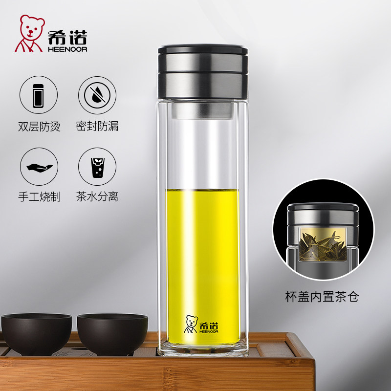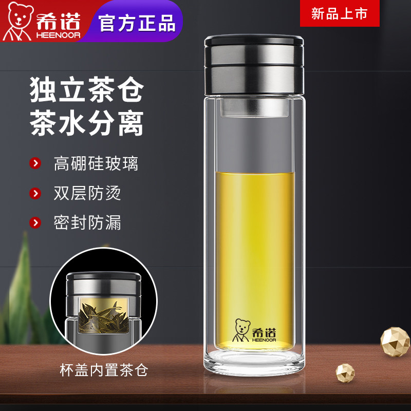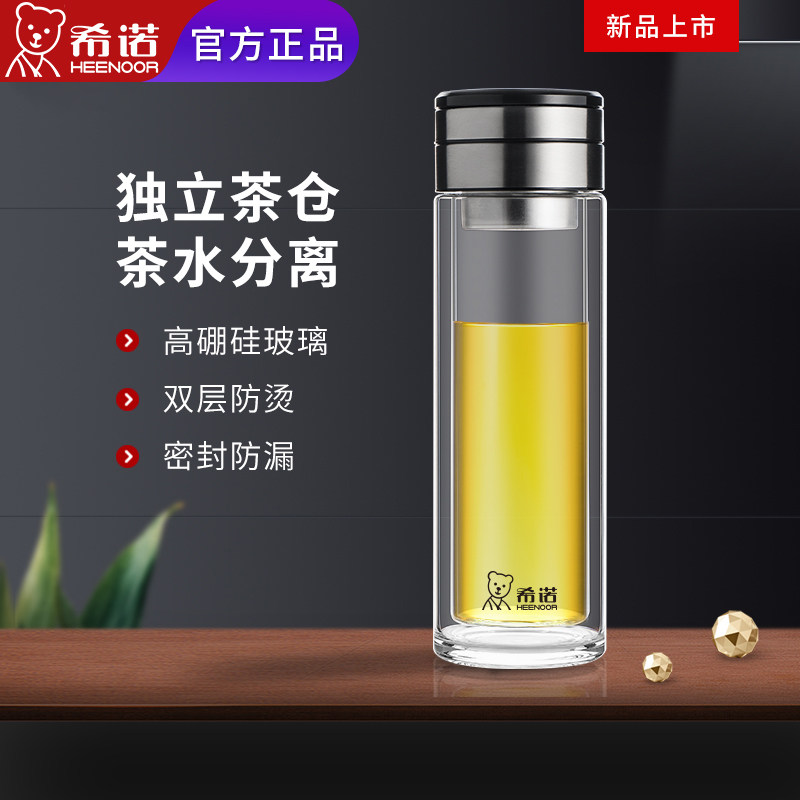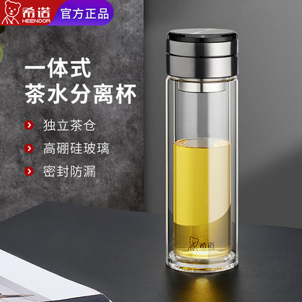 希诺茶水分离玻璃杯男女士杯子家用泡茶杯双层水杯官方官网正品
