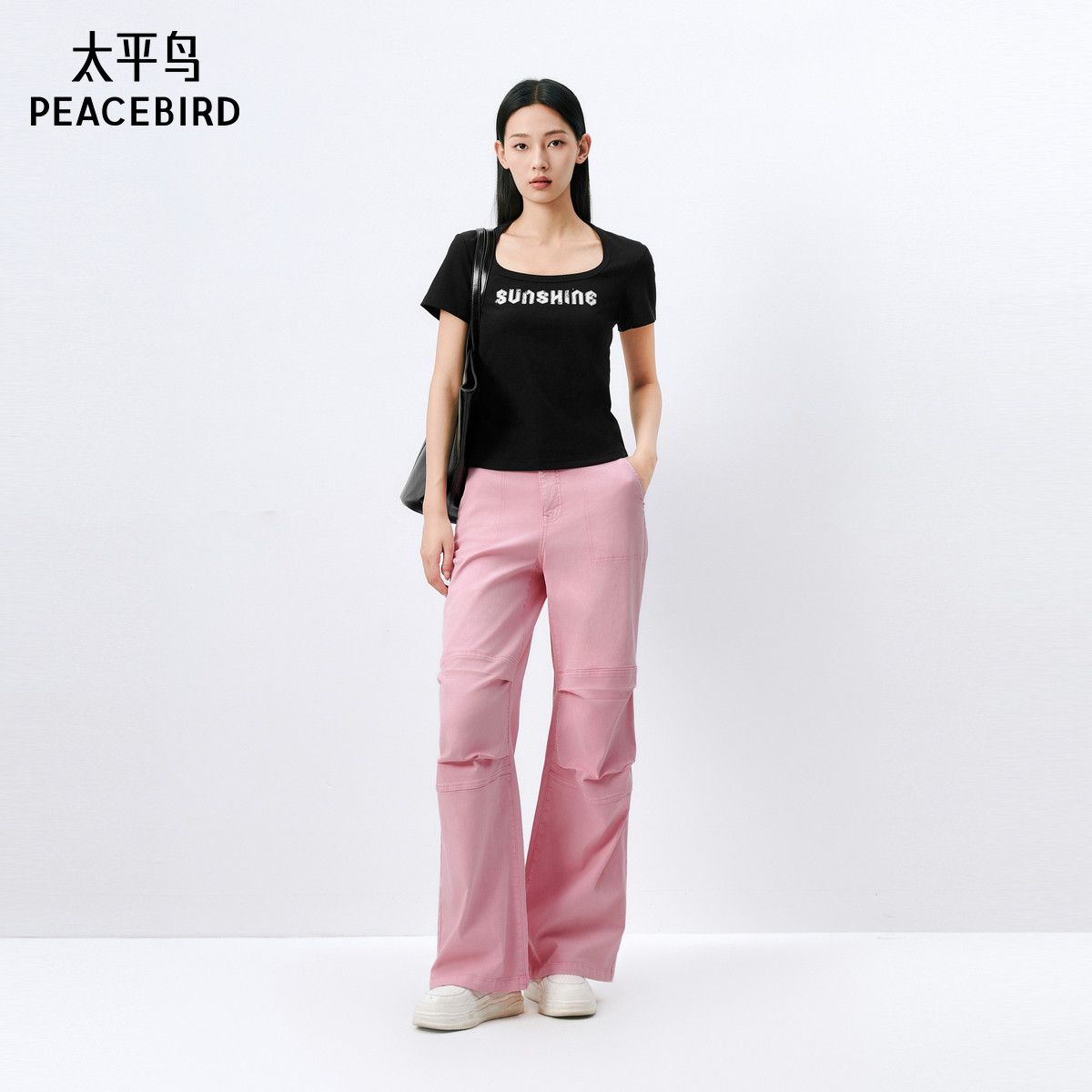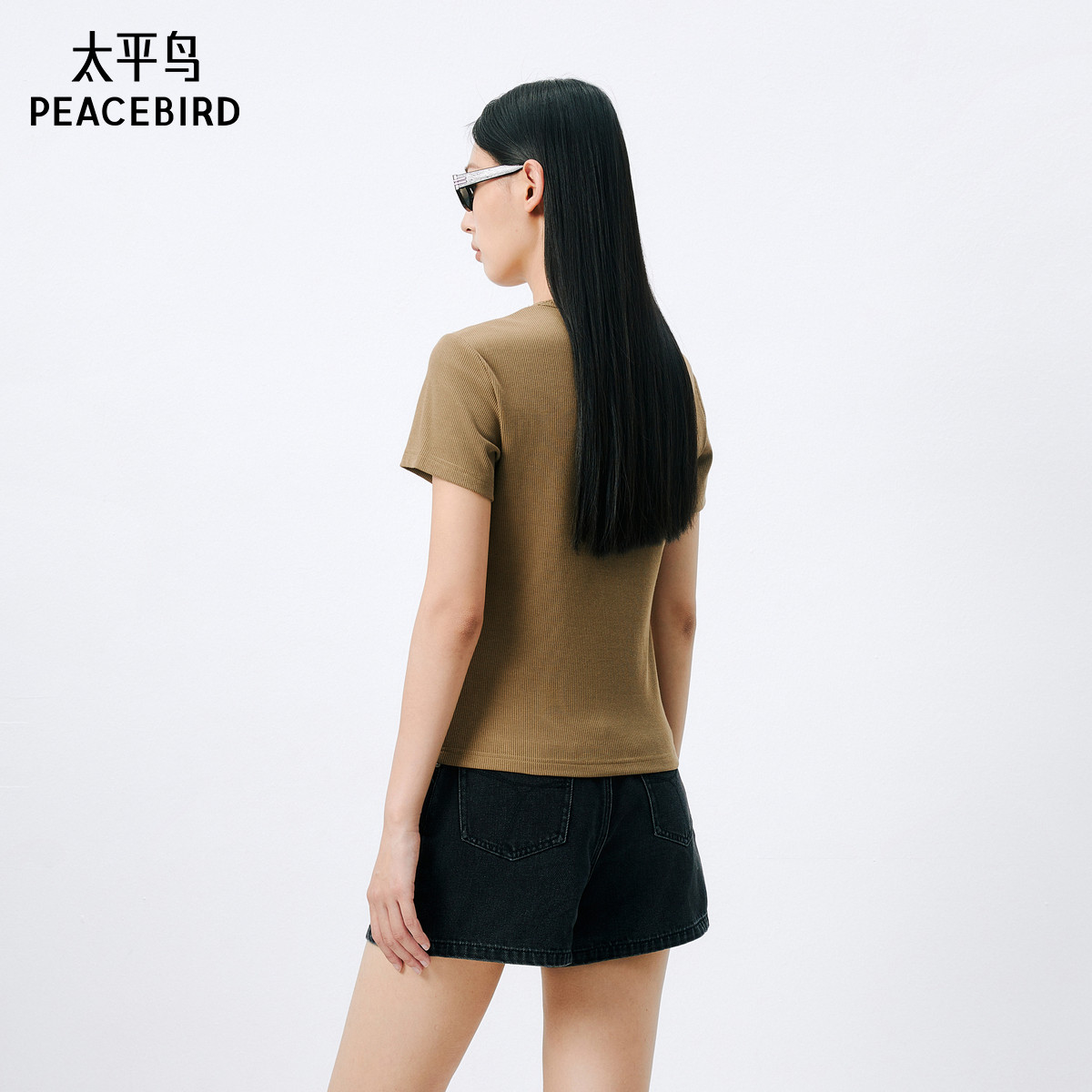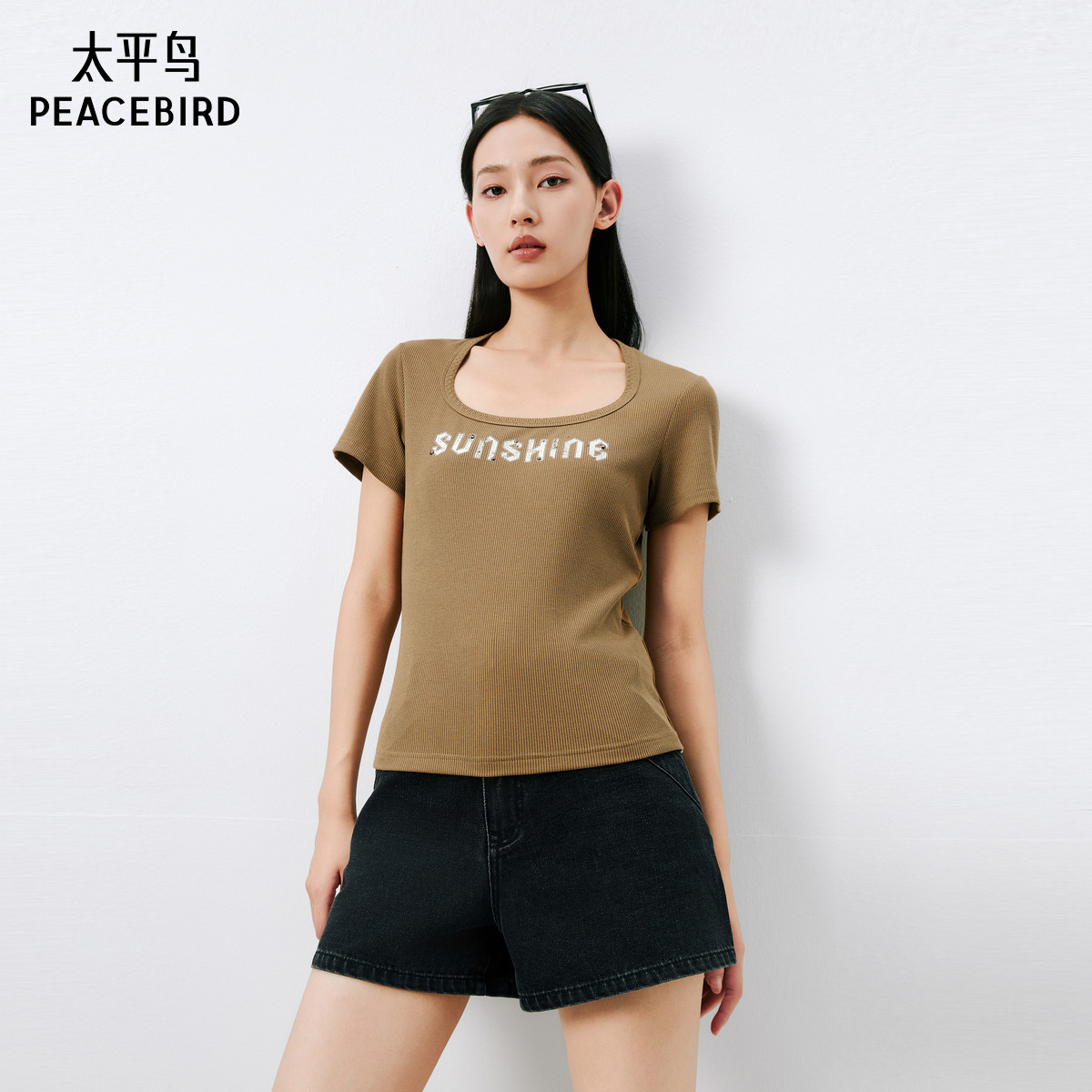 太平鸟U领修身短袖T恤女