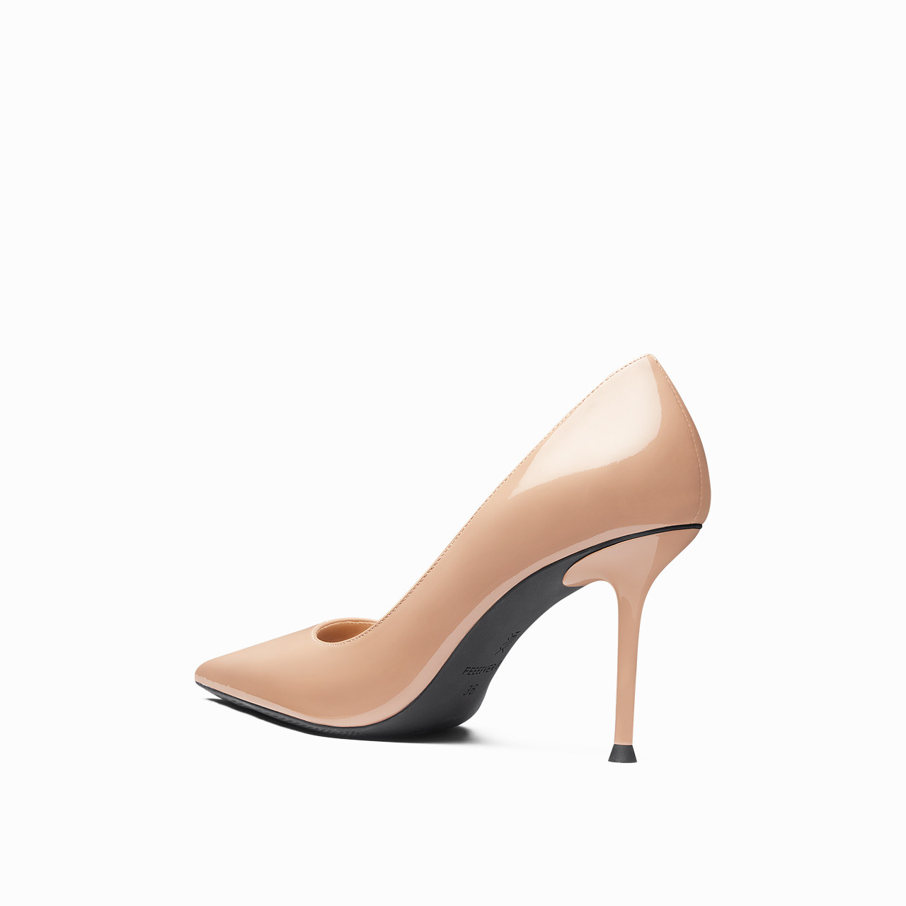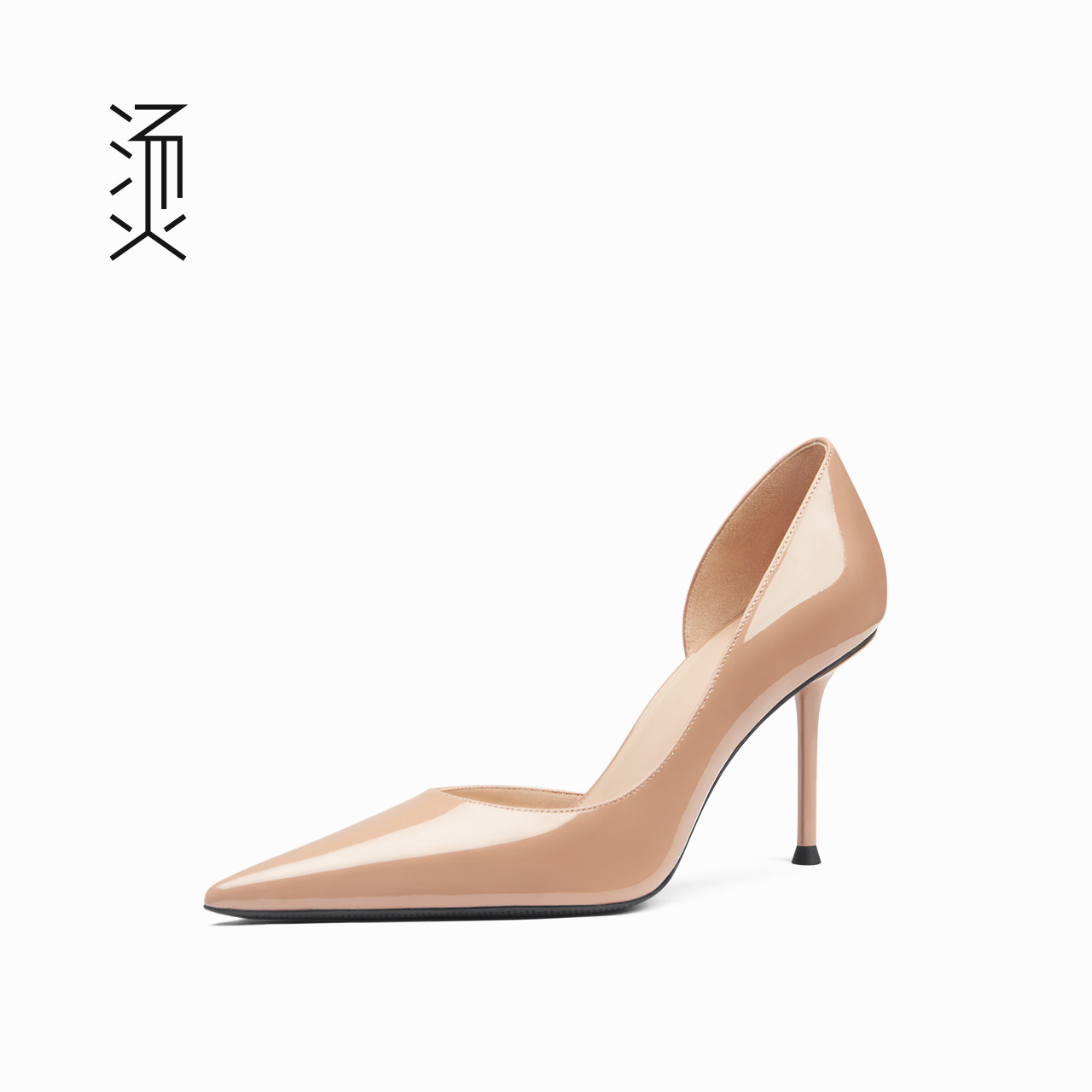 烫社交女鞋裸色漆皮尖头侧空细高跟鞋气质法式职业通勤百搭凉单鞋