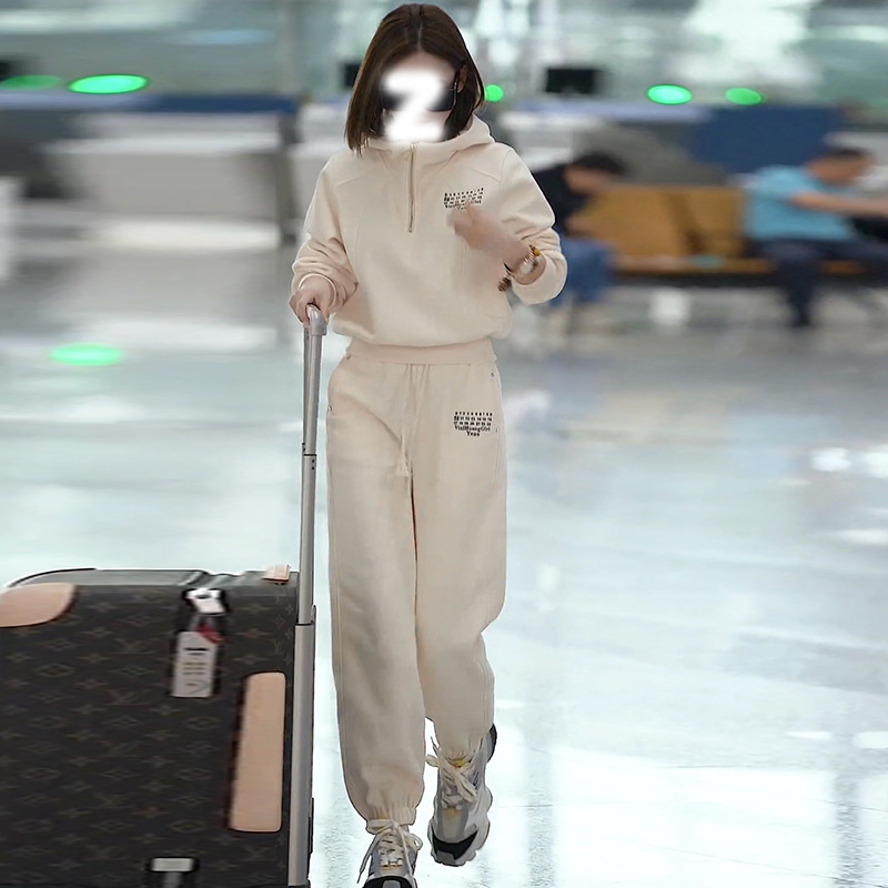 红色运动装套装女秋冬2025休闲流行显瘦感炸街卫衣加绒两件套