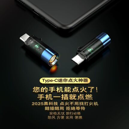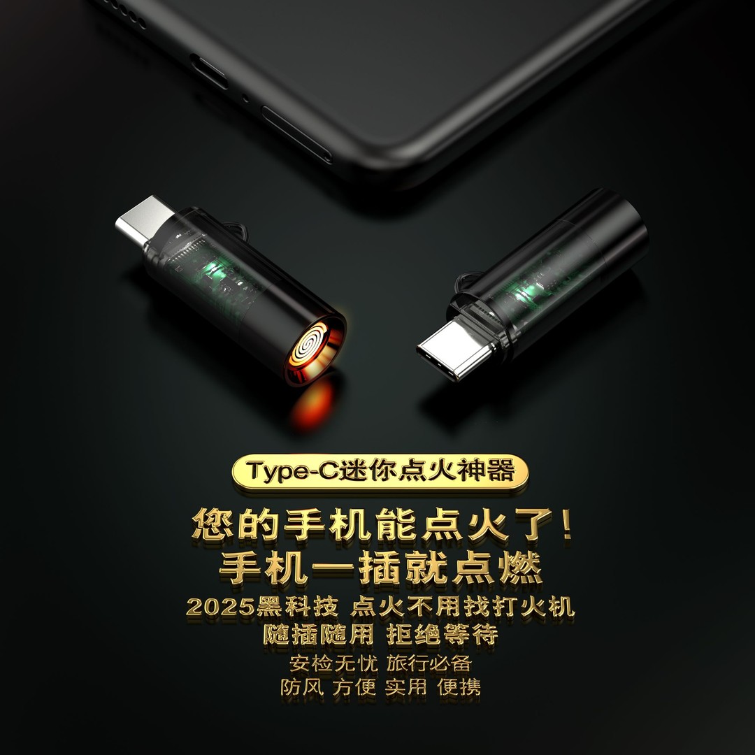 便携迷你点燃器户外露营应急点火器外接type-c线即插即用车载通用