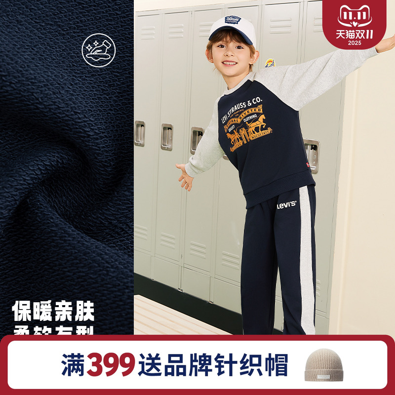 Levis李维斯儿童运动套装童装卫衣2025秋装新款男童长袖长裤2件套