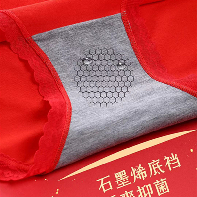 彩田大红色内裤女莫代尔抗菌纯棉裆透气结婚喜庆本命年蕾丝短裤头