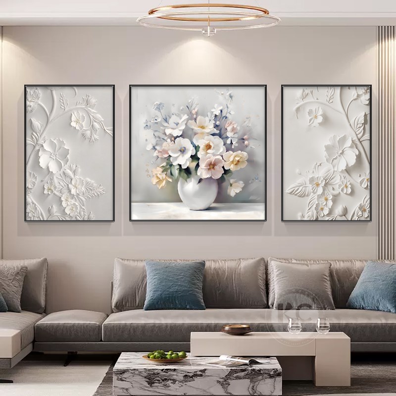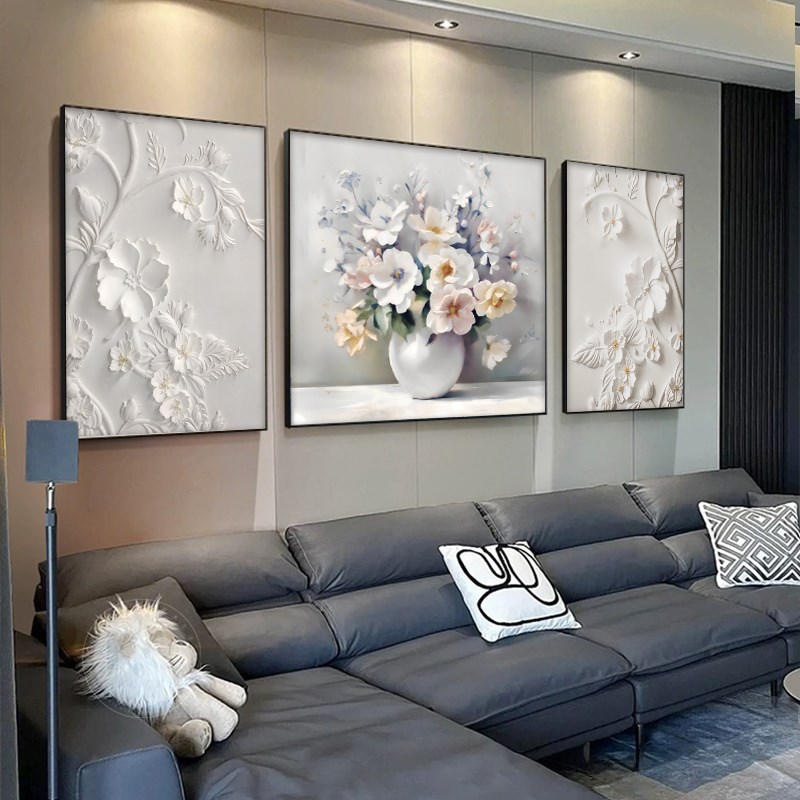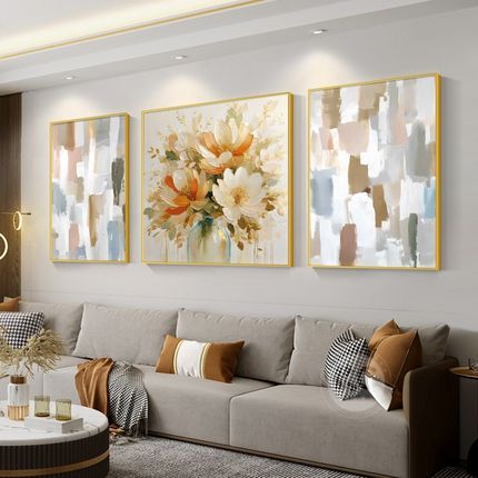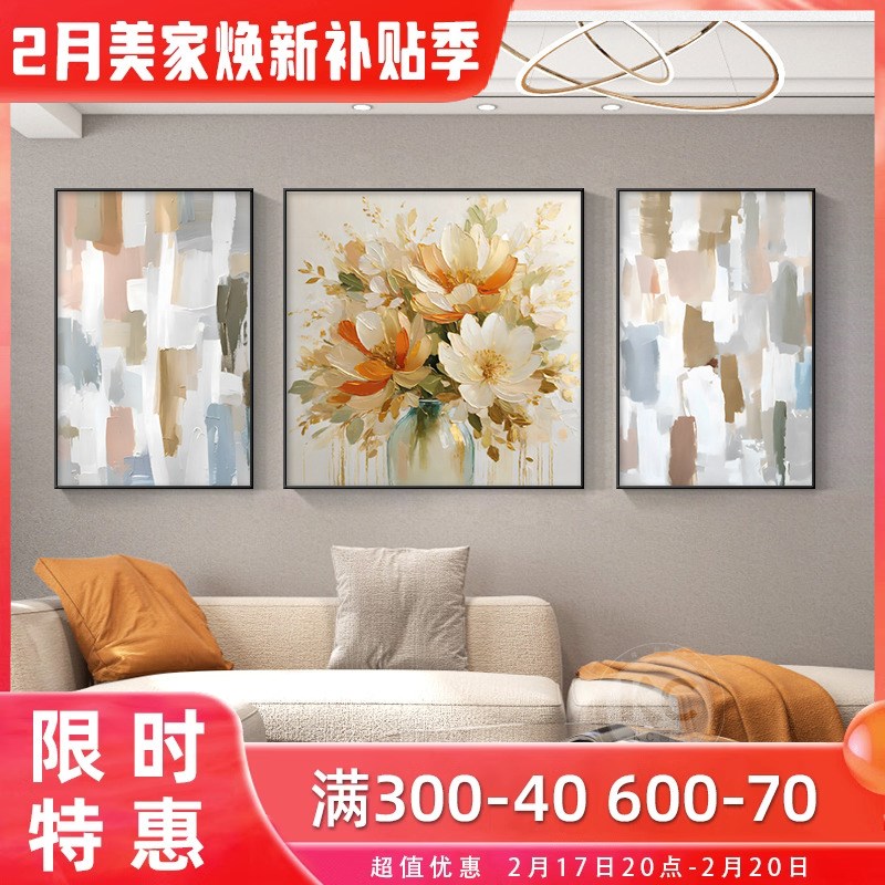 大芬油画村客厅装饰画奶油风抽象肌理花卉壁画沙发背景墙挂画三联