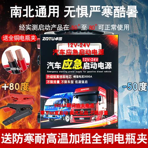 汽车应急启动电源12v24v车载大容量电源救援货车电瓶强起搭电打火