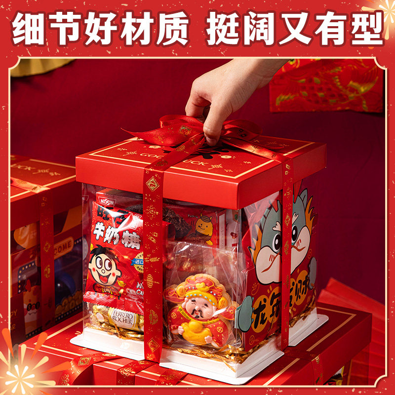新年零食蛋糕礼盒礼物盒送男女朋友惊喜大礼包透明手提盒子包装盒