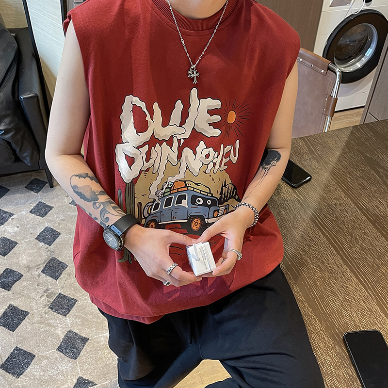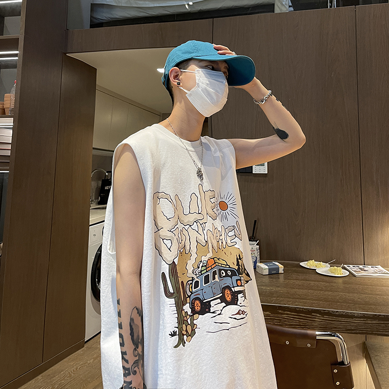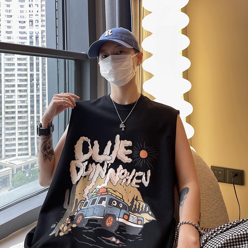 大码300斤美式印花背心夏季宽松