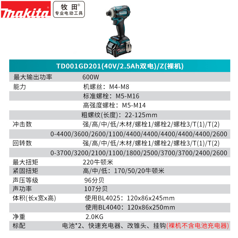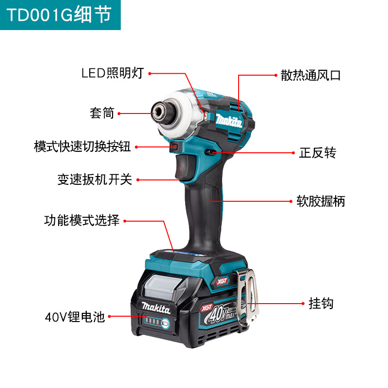 牧田Makita充电式冲击起子机40V锂电TD001G锂电螺丝批无刷