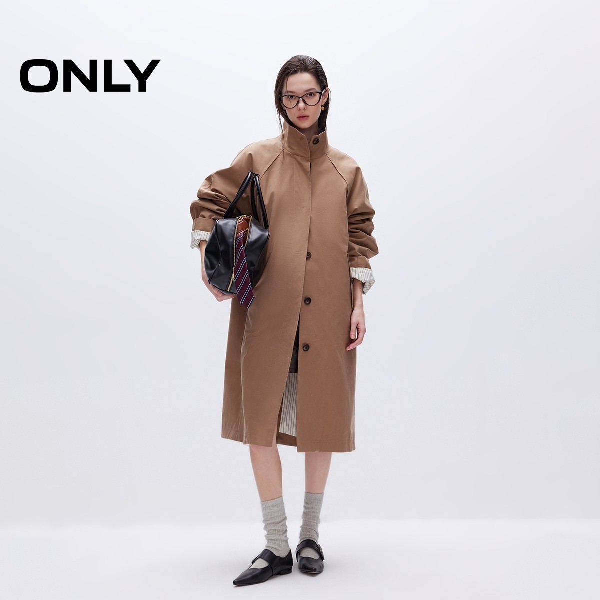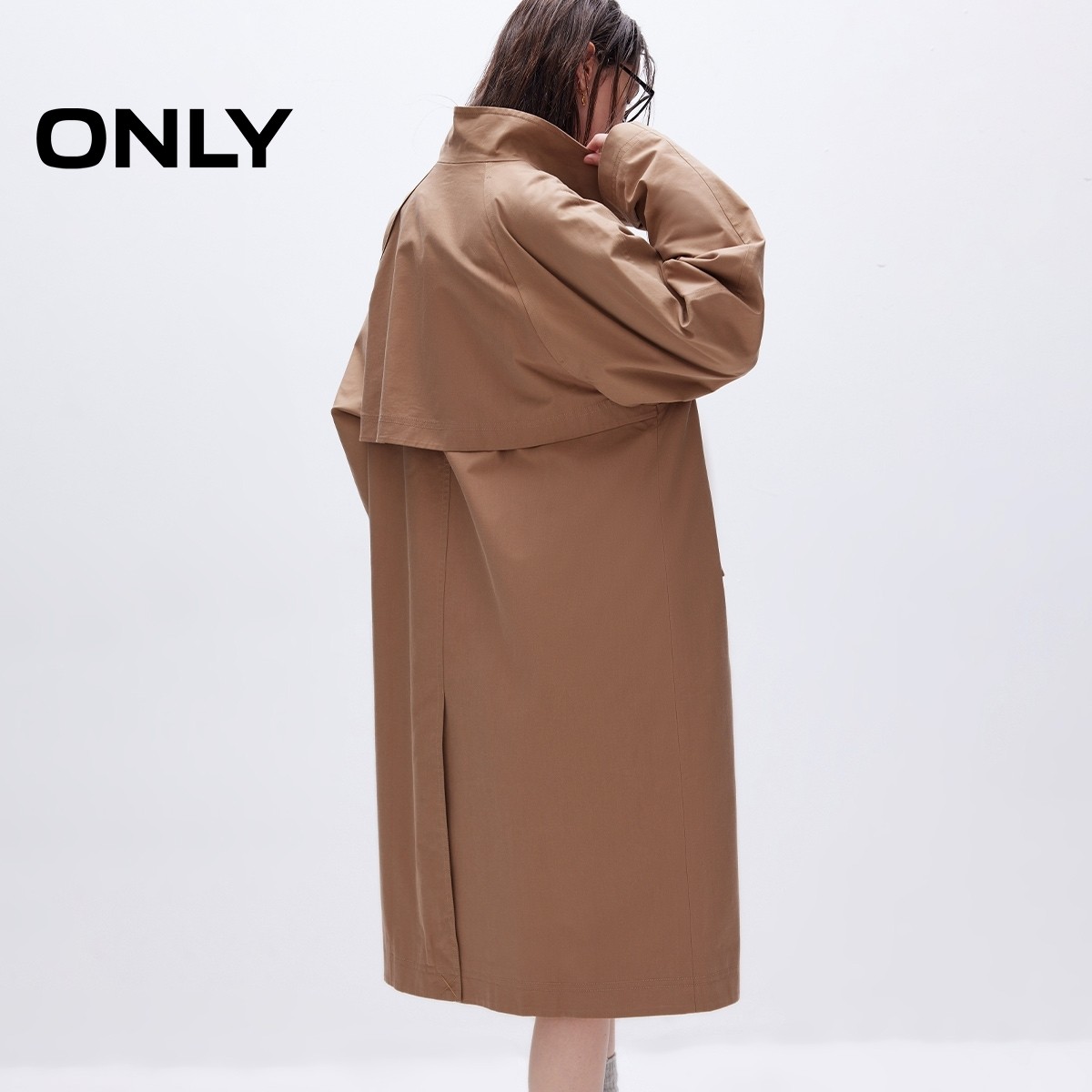 v区绫致ONLY2025秋冬新款潮酷百搭宽松立领中长款风衣外套女