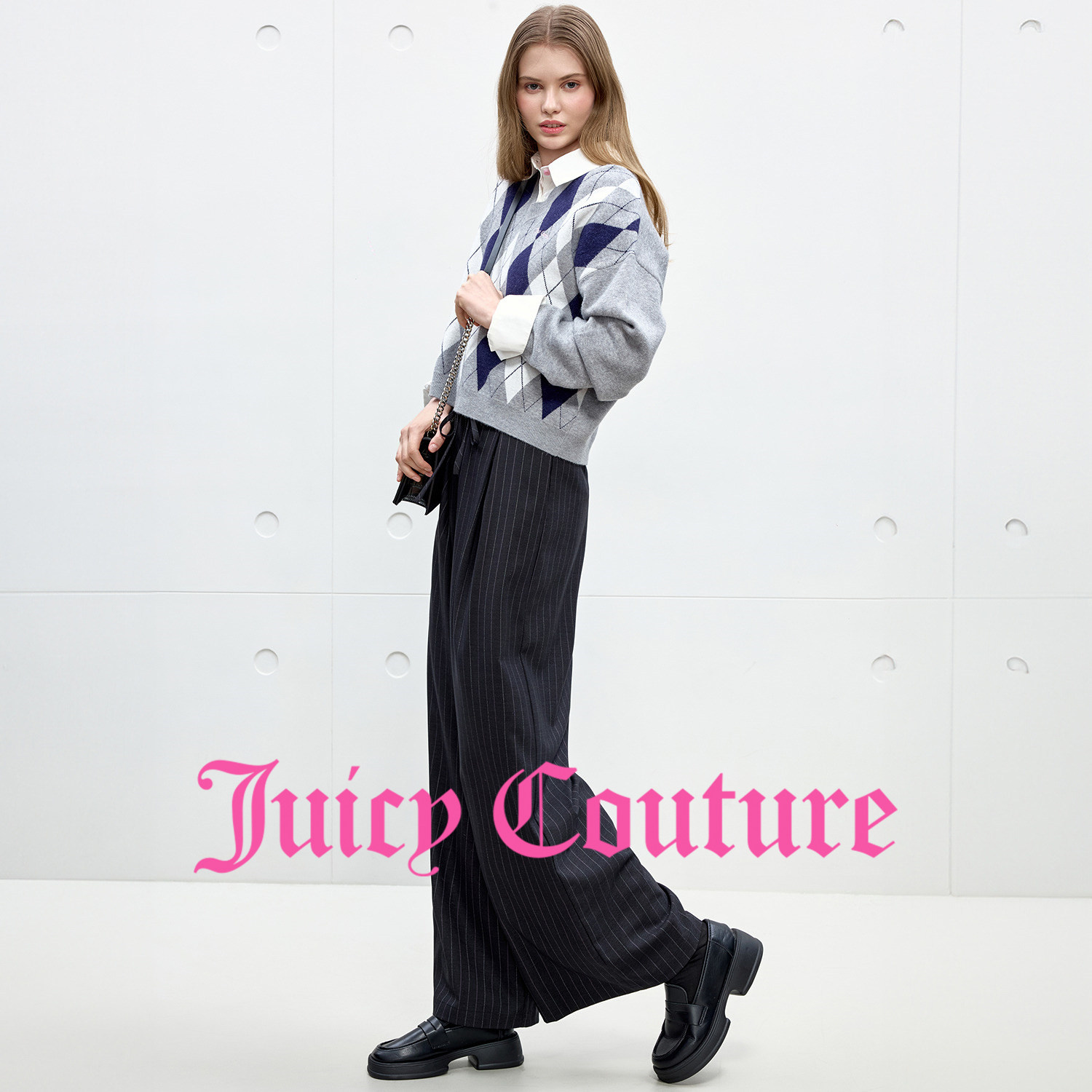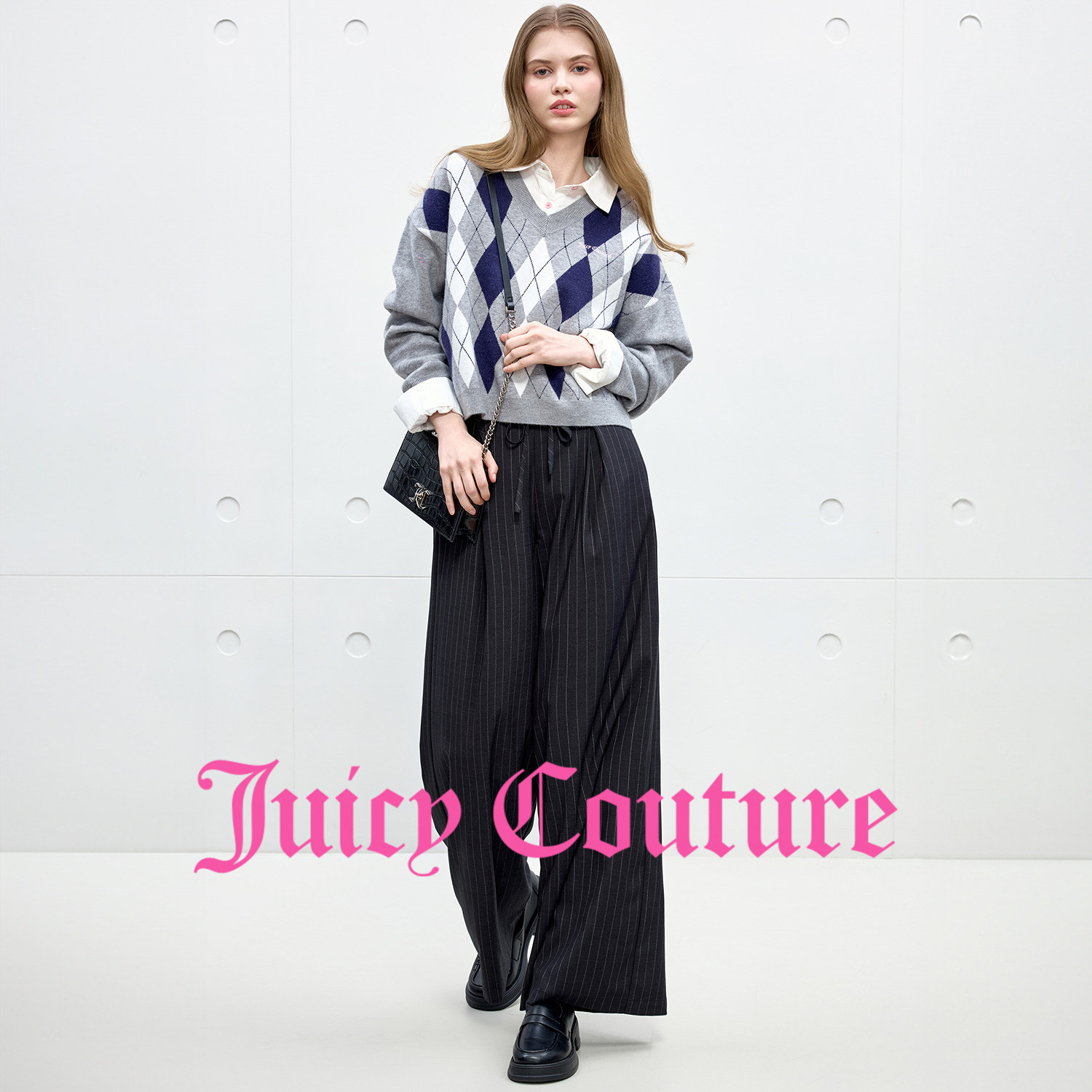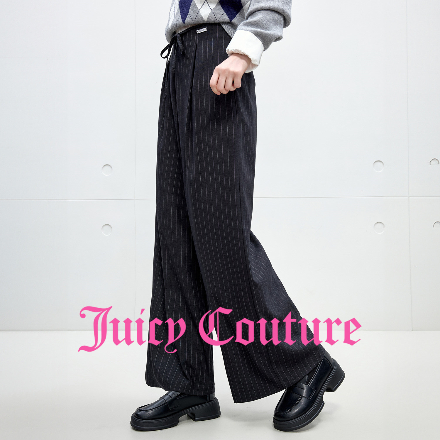 Juicy Couture橘滋休闲裤女气质条纹直筒西装长裤