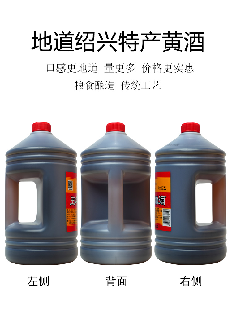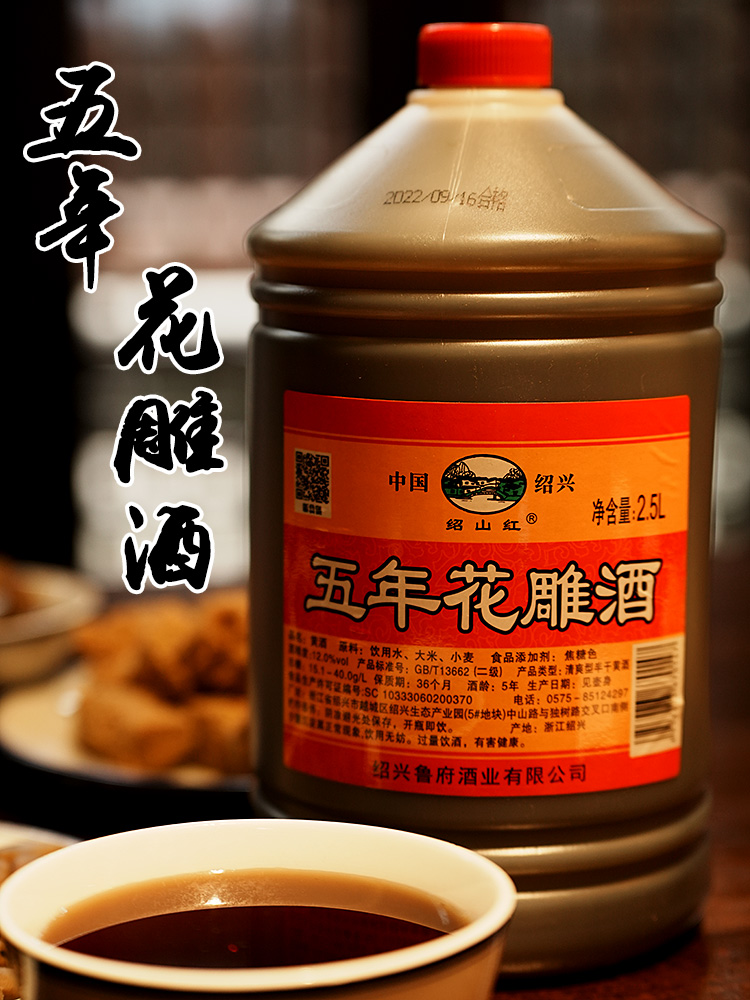 绍兴特产黄酒绍山红五年花雕酒加饭大米酒壶装料酒桶装2.5L*6整箱