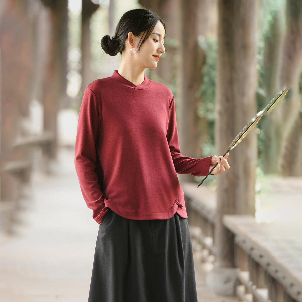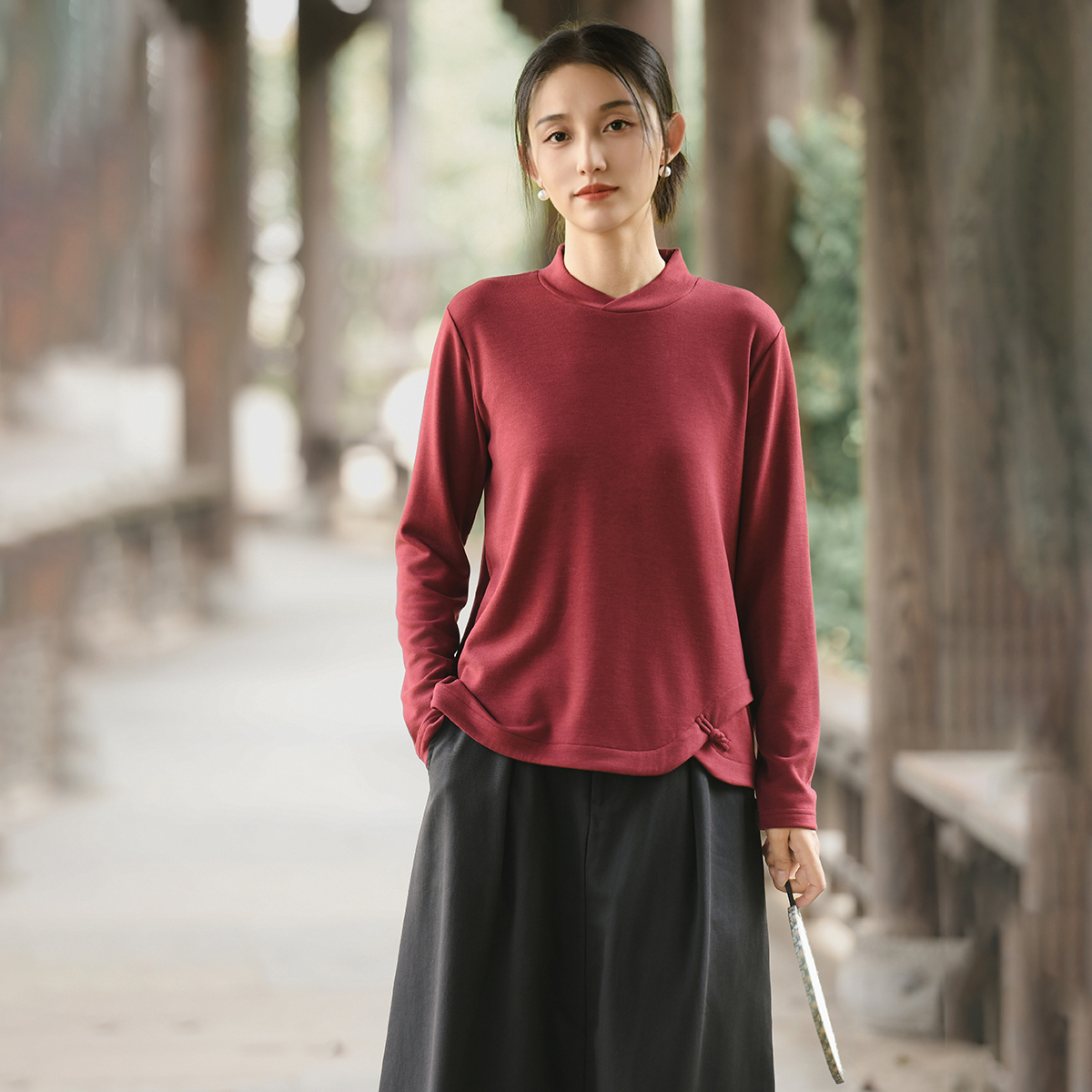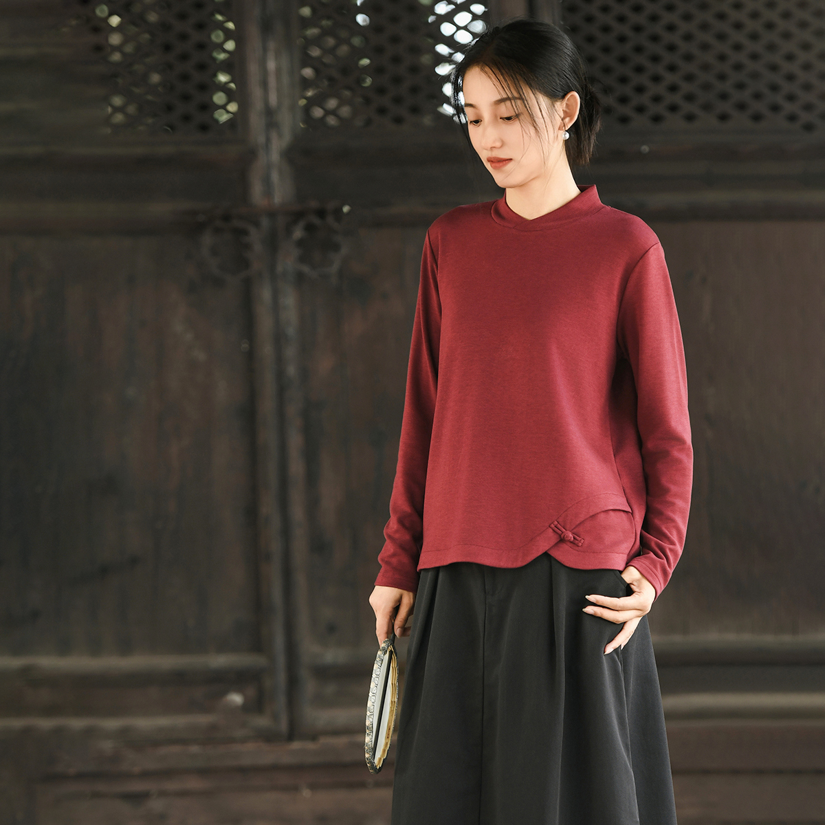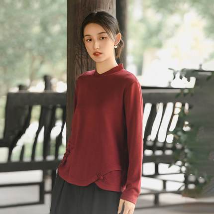 德绒打底衫新中式女装可外穿复古上衣2025秋新款内搭长袖宽松T恤