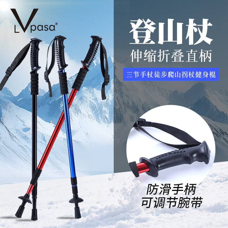 专业户外登山杖手杖铝合金碳素轻便伸缩折叠爬山拐棍男女款徒步用