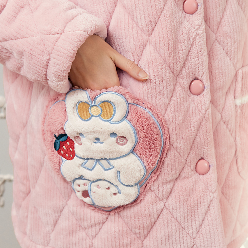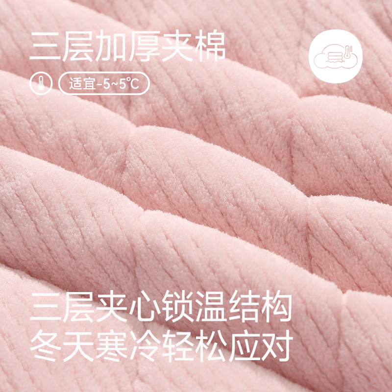 芬腾珊瑚绒睡衣女秋冬季保暖抗静电三层夹棉法兰绒连帽家居服套装