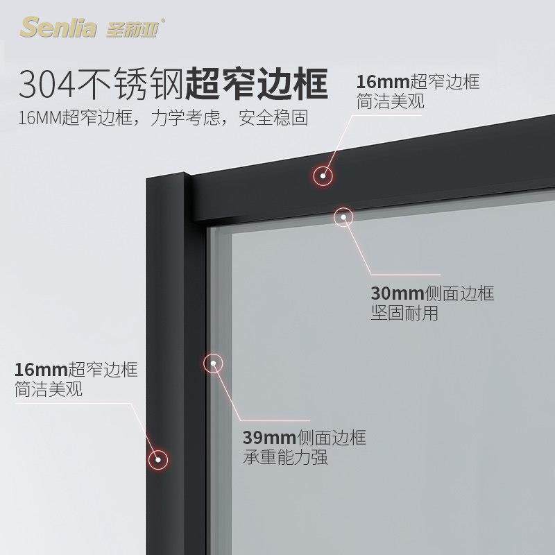 圣莉亚淋浴房浴室隔断玻璃推拉门一字窄边框极简不锈钢钢化玻璃