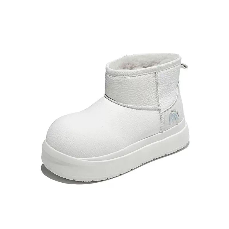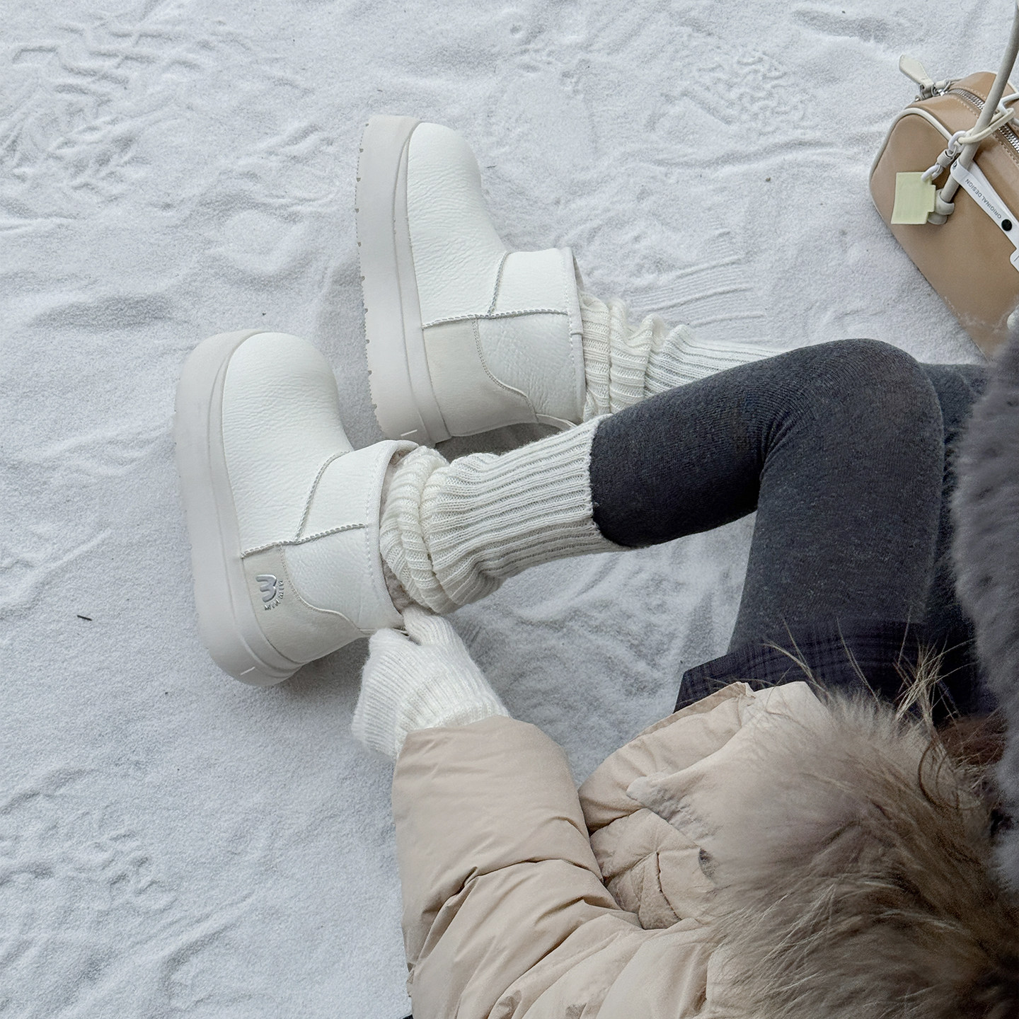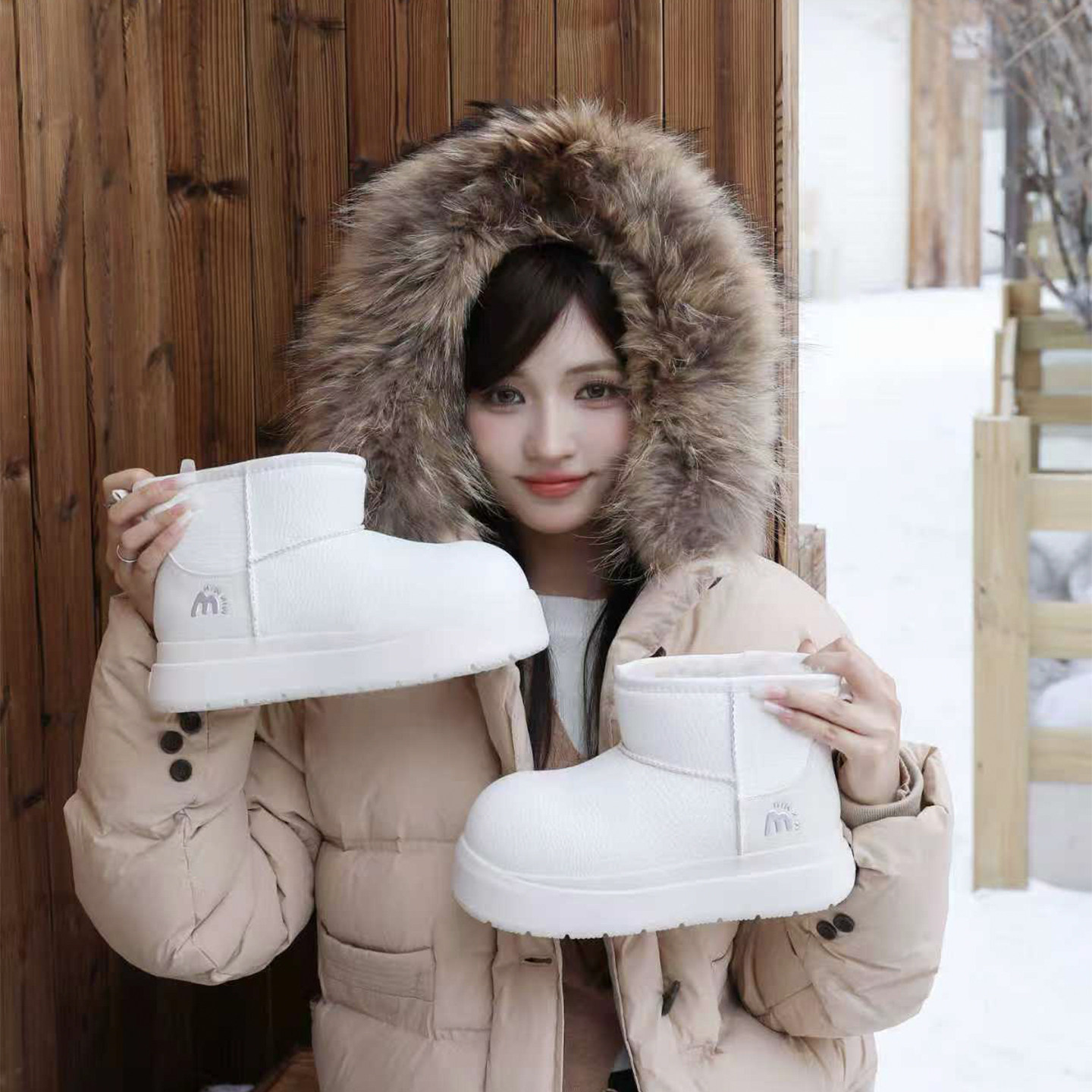 白色真皮防水厚底雪地靴女2025冬季新款内增高加绒加厚大棉鞋保暖