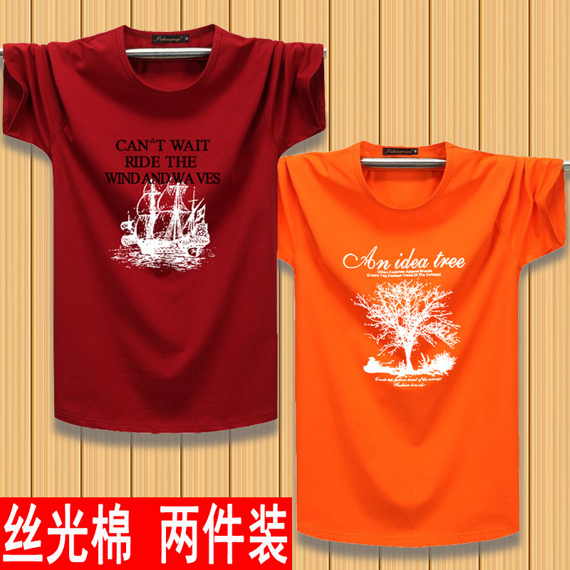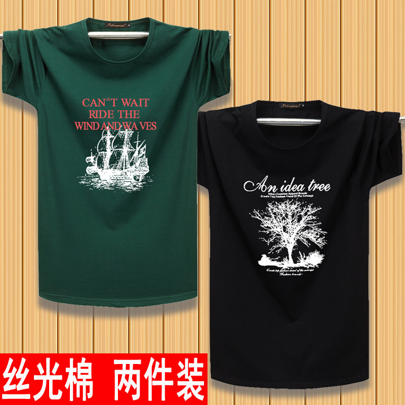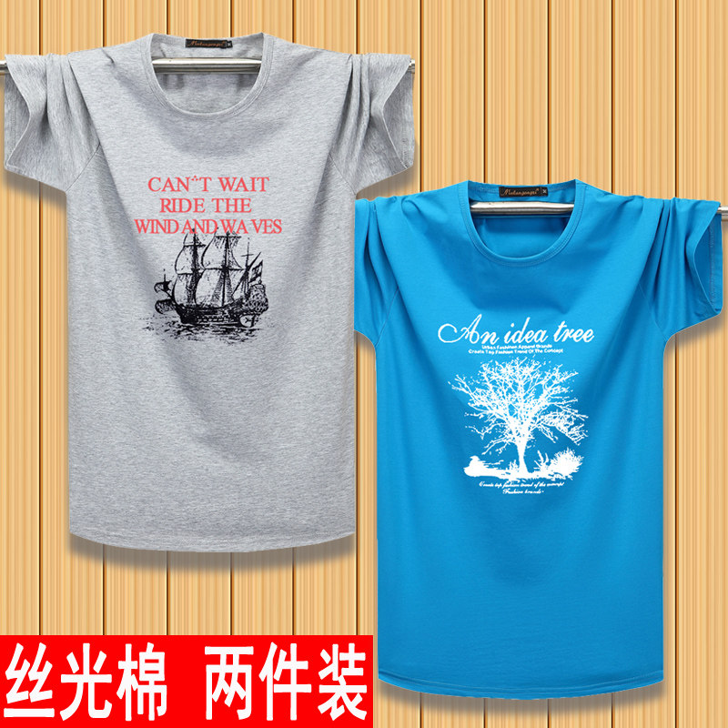 2件】男短袖t恤纯棉莱卡丝光棉青年时尚休闲宽松大码男装加肥加大