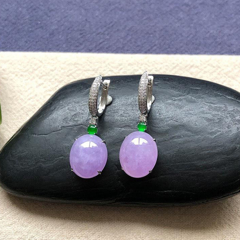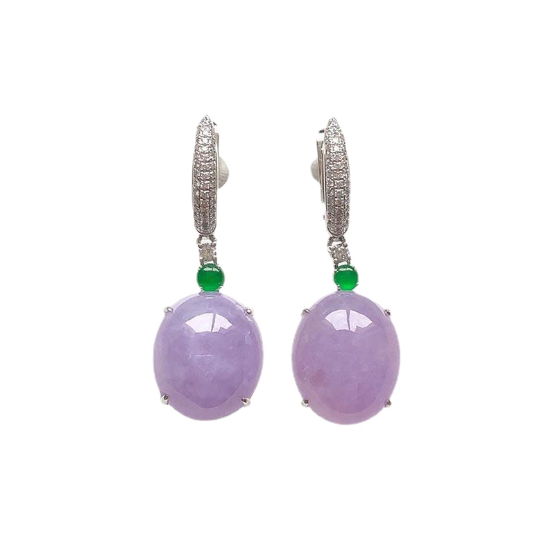 天然紫罗兰玉髓耳环大蛋面紫玉耳坠镶满天星超闪仙气质耳饰古紫色